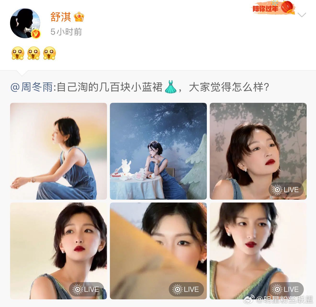 舒淇对周冬雨全肯定我夸闺蜜穿搭时就舒淇这样 周冬雨:瞅瞅我淘的百元小裙,好看不?舒淇:已经脑补出两个人激情分享的画面了,嗑到了