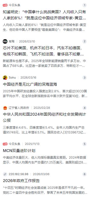 “中国拿什么挑战美国?人均收入只有人家的8%!”就是这位中国经济领域专家-黄亚生,他劝告中国人不要相信“唱衰美国论” 麻烦看官老爷们右上角点击一下“关注”,既方便您进行讨论和分享,又能给您带来不一样的参与感,感谢您的支持! 这位麻省理工学院的教授给咱们提了个醒,劝中国人别信那些“唱衰美国”的论调。他摆出的数据很扎眼:2024年中国人均GDP大概1.27万美元,美国是8.1万美元,这么一算,咱们确实只占人家的15%左右,如果算购买力差距,他说甚至只有8%。这数字一出来,确实让人心里咯噔一下,感觉咱们离那个超级大国还隔着好几条街。 黄亚生之所以这么讲,是想让大家把眼睛从“总量”挪到“人均”上。咱们现在GDP总量全球第二,这没得跑,但一除以十四亿人,就成了那个不太好看的数。他提醒说,别被外面的“捧杀”忽悠了,觉得自己真能和美国平起平坐。在他眼里,美国的强大不只是表面数字,而是藏在那种能孵出硅谷、源源不断出原创技术的创新生态里,还有美元在国际上那种收“铸币税”的特权,这些都是短时间内很难追上的硬茬子。 不过,话说回来,单纯拿人均收入比,多少有点“不讲武德”。美国那是啥时候开始攒的家底?南北战争打完就开始工业化狂奔,又靠两次世界大战卖军火发家,美元霸权更是让全世界帮他们分担通胀压力。咱们改革开放满打满算才四十多年,从当初那个连钉子都要进口的农业国,硬是干到了世界第二大经济体,这速度已经是开挂的存在。拿咱们短短几十年的积累,去跟人家上百年的工业沉淀比绝对值,这起点本来就不在一个跑道上。 这几年,咱们在某些领域确实跑到了前面,这可不是吹出来的。就说高铁,去年底运营里程破了5万公里,从西安到延安,以前开车得晃悠七八个小时,现在复兴号两个来钟头就到了,革命老区的老乡们出门方便太多了。还有新能源车,2025年全球销量两千多万台,咱们自己就占了68%还多,比亚迪一家就卖出四百多万辆,满大街跑的绿牌车就是最好的证明。 光伏更不用说,累计装机12亿千瓦,全球一大半的光伏板都是中国造,成本压到国外同行的一半,内蒙古那些大基地里,成片的光伏板一眼望不到头,发的电源源不断往外送。5G基站咱们建了四百八十多万个,哪怕去三线城市郊区,开会视频也不带卡的。这些实打实的基础设施,不是靠吹牛吹出来的,是这几年真金白银砸出来、汗水流出来的硬菜。 当然,咱们得承认,高端芯片、顶尖机床、飞机发动机这些精细活儿,咱们跟人家还有距离。以前在实验室测过芯片的都知道,14纳米以下的良率、光刻机的精度,那真是一道大坎儿。日本德国的五轴联动机床,人家能稳稳当当用几十年精度不丢,咱们有些设备新的时候挺好,用久了就容易露怯。这玩意儿得靠材料、工艺和时间的沉淀,急不得。 但有意思的是,咱们中国人特别擅长“系统集成”这种事关国计民生的大活儿。高铁、新能源、特高压电网,这些需要庞大市场、完整产业链和超强调度能力的领域,咱们一旦打通任督二脉,那就是世界级的。这不只是量的堆砌,更是质的改变。像以前老担心电动车冬天趴窝,现在电池技术迭代几轮,续航焦虑比几年前少多了,身边朋友换国产车的越来越多,用着还真不赖。 最关键的一点是,咱们发展的路子跟西方不一样。美国是靠殖民、战争和金融霸权堆起来的金字塔,而咱们是一步步靠自主创新、产业升级干出来的老实活儿。无论是非洲还是东南亚,很多发展中国家看着中国的路子觉得亲切,因为咱们没抢没夺,全靠自己卷自己,卷出了性价比,也给世界提供了另一种活法。 说到底,黄亚生教授的提醒是有价值的,他告诉咱们别飘,要看清差距。人均收入确实还有距离,这得靠高质量发展慢慢填。但咱们也不用妄自菲薄,更别被那几个干巴巴的数字吓住。挑战美国不是要跟它打一架,而是要把自己的日子过好,把产业链的短板补上,把内需的潜力挖出来。只要咱们的工程师红利还在、产业链韧性还在、那股不服输的劲儿还在,人均那点差距,总有一天会抹平。