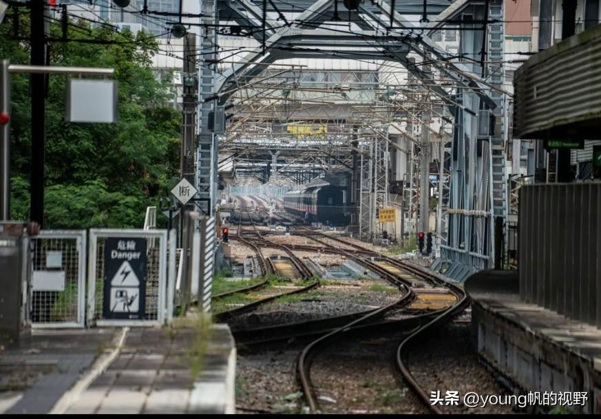 广九铁路罗湖桥。此桥是深圳与香港的分界线,距离之近甚至跨过桥后就可以看到香港的东铁线列车。过去进港直通车就是通过此线路到达香港的,不过现在由高铁列车代替了直通车列车。大陆与香港的火车只能隔桥相望,组成这个特殊的合影。从香港方向看过去深圳,轨道上似乎都已经出现锈迹了,看来平时也很少有列车可以跨境通行了。