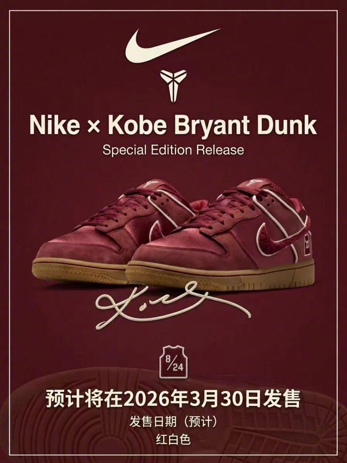 科比20周年限定款即将发布!曼巴红白经典这双承载曼巴精神的经典板鞋,红白撞色+细腻皮革质感,复古氛围直接拉满,低帮版型利落显瘦,日常通勤、情侣出街都适配,会成为你的年度必入款吗?