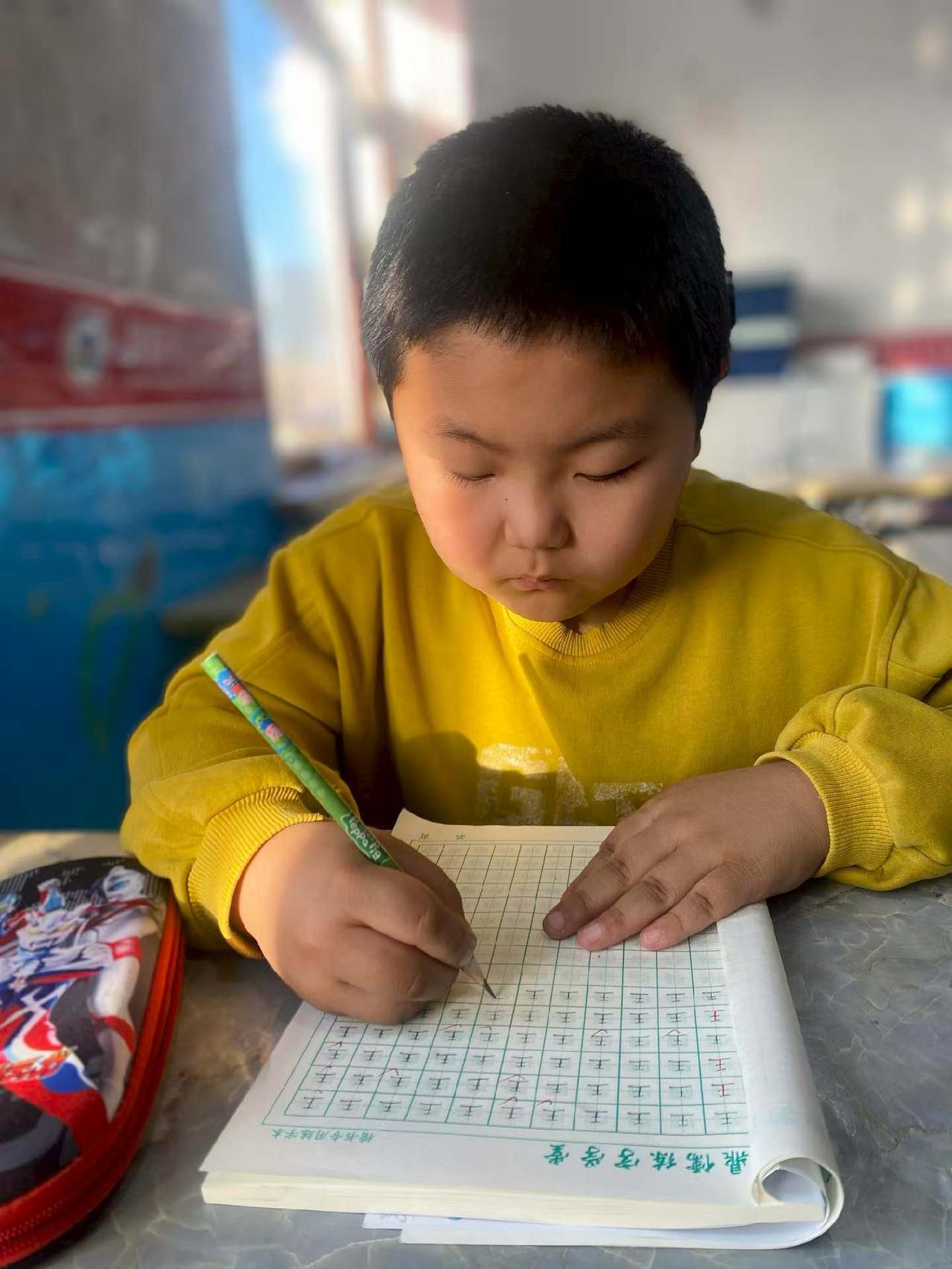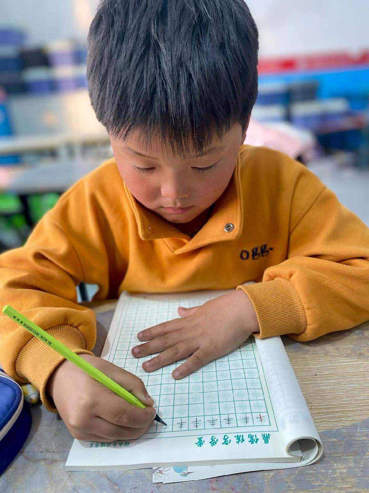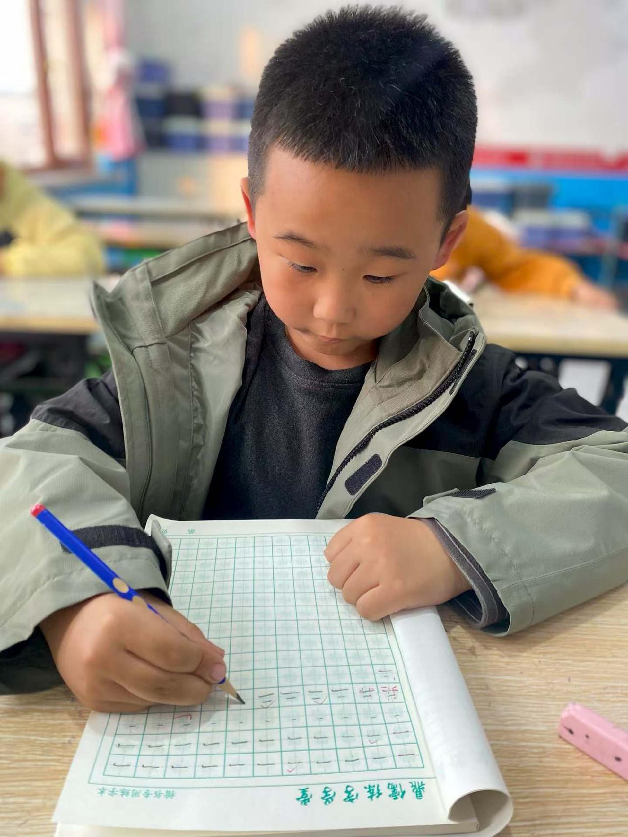 专注的小学生在教室里认真写字,可爱又勤奋!📚👩🏫