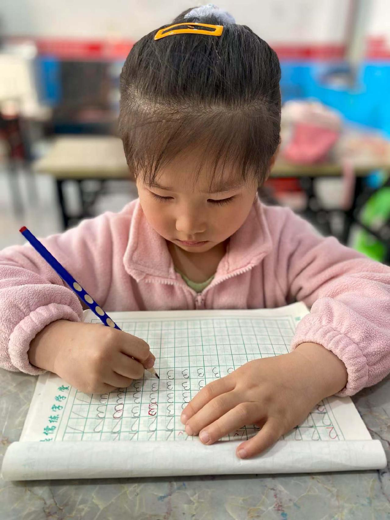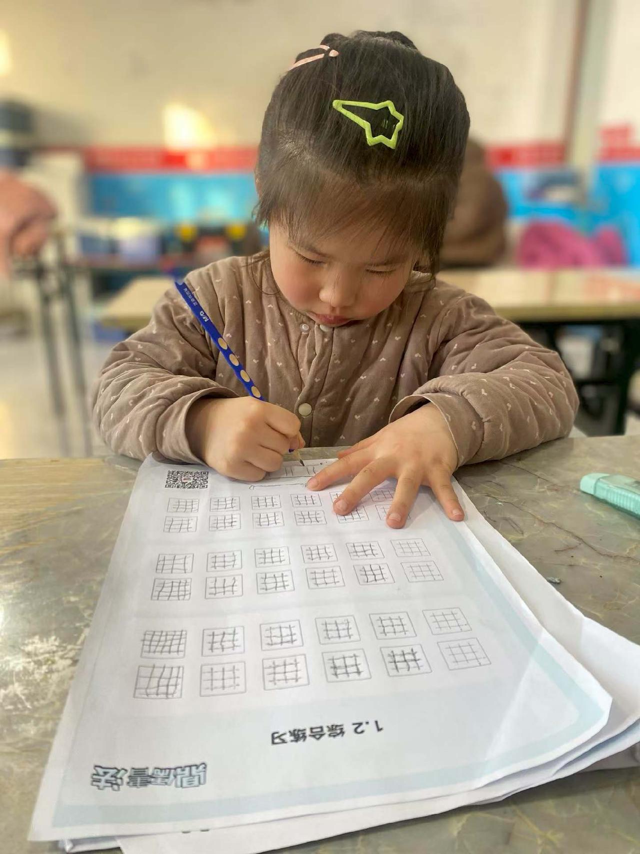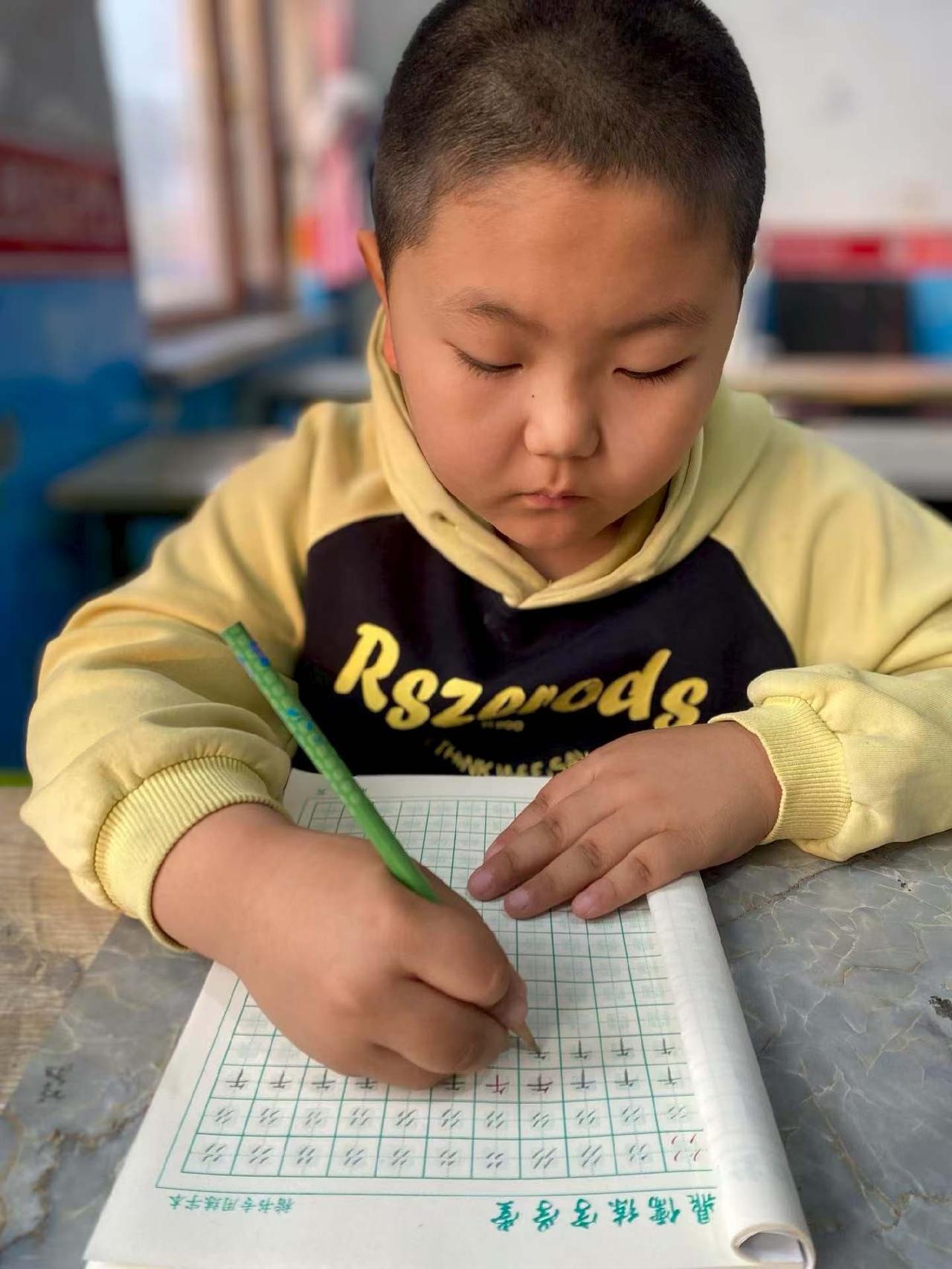 专注的小学生在教室里认真写字,可爱又勤奋!📚👩🏫