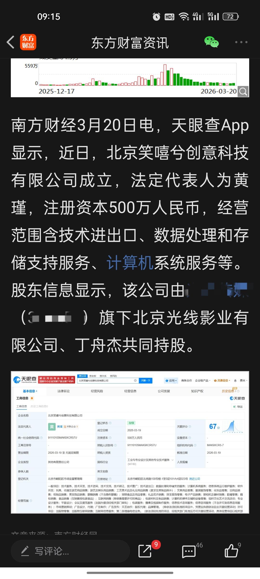业绩暴增4倍,股价却腰斩,如今又来这么一出,股民:你是在嘲笑我们吗? 周五晚上,这家公司的一则公告,让持股过周末的股民彻底炸了锅。 公告内容其实挺普通——公司成立了一家叫“北京笑嘻兮创意科技有限公司”的新公司,注册资本500万,主要做数据处理、计算机系统服务之类的业务。 问题出在名字上——“笑嘻兮”。 这三个字,在这个节骨眼上,怎么看怎么扎眼。有股民直接开喷:“我们在哭,你在那笑嘻嘻,这公司是故意的吧?” 要理解股民为啥看到“笑嘻兮”会暴怒,得先看看公司的股价走成了啥样。 截至3月20日收盘,公司的股价报15.52元,较近期高点29.88元已跌去近一半。从2月底到现在,20个交易日跌幅超过33%。 这还不是最惨的——最惨的是,根据最新数据,公司股票的获利盘比例已经降至0%。 0%是什么概念? 意味着所有持有这只股票的投资者,全部处于亏损状态,没有一个例外。从高点追进去的亏了近50%,就算在相对低位进去的,也基本被埋了。 资金也在疯狂出逃。3月20日当天,主力资金净流出1.26亿元。近20个交易日,主力资金净流出超过55亿元。 有股民在股吧里吐槽:“天天破位,我跟你是有仇吗?”还有人说:“你能不能先把股价止跌,再来笑嘻嘻?” 这话说得挺实在。股价都跌成这样了,你突然冒出来一个“笑嘻兮”,这不是往伤口上撒盐吗? 最让股民想不通的是,公司的基本面其实一点都不差。 就在今年1月底,公司发布了2025年业绩预告,数据相当炸裂:归母净利润15亿到19亿元,同比增长413.67%到550.65%。 你没看错,翻了四到五倍。 这钱是怎么赚的?《哪吒之魔童闹海》功不可没。这部片子不光票房大卖,还带动了IP衍生品业务,加上艺人经纪和投资收益,光线去年确实赚得盆满钵满。 那股价为啥崩了? 成也春节档,败也春节档。 2025年春节档,《哪吒2》让公司股价一个月翻倍,市值一度冲破1200亿。股民尝到了甜头,今年春节前又提前冲进去埋伏,想着再来一波。 结果呢? 今年春节档总票房只有57.52亿,创下近八年新低。去年同期可是95.1亿啊。公司参投的《飞驰人生3》虽然拿了档期冠军,但跟去年《哪吒2》那种主控爆款完全不是一个量级。 预期落空,资金踩踏出逃,股价就这么崩了。 平心而论,“笑嘻兮”这个公司名,大概率就是个巧合。 工商信息显示,这家公司注册于3月20日,法定代表人叫黄瑾,经营范围是数据处理、计算机系统服务这类技术活儿。500万的注册资本,在上市公司眼里也就是个普通子公司。 名字里的“嘻”字,可能是想表达“创意”“轻松”的意思,毕竟公司的主营业务就是做内容的。但这个时间点,这个名字,在亏损的股民看来,就是赤裸裸的嘲讽。 “笑嘻嘻”对“哭唧唧”,这反差也太大了。 有网友评论说:“这名字起得,是嫌股民不够惨吗?”还有人说得更直接:“收割完股民,还要笑嘻嘻,吃相太难看了。” 公司的这波操作,本质上是个“黑色幽默”: 一家业绩暴增的公司,股价却让所有股东都亏了钱。这时候公司发了个名字叫“笑嘻嘻”的公告,亏钱的股民看到,只能苦笑。 你说公司有错吗?注册个子公司,正常经营行为,没毛病。股民有错吗?看好公司业绩买进去,结果被埋,也没毛病。 错就错在这个时间点,这个巧合,太讽刺了。 眼下公司的股价还在15块多徘徊,动态市盈率不到15倍。对于一个业绩还在增长的头部内容公司来说,这个估值不算贵。但股民信不信,就是另一回事了。 毕竟,被“笑嘻嘻”伤过的心,没那么容易愈合。 在座的各位老铁你们怎么看?欢迎在评论区讨论一下。