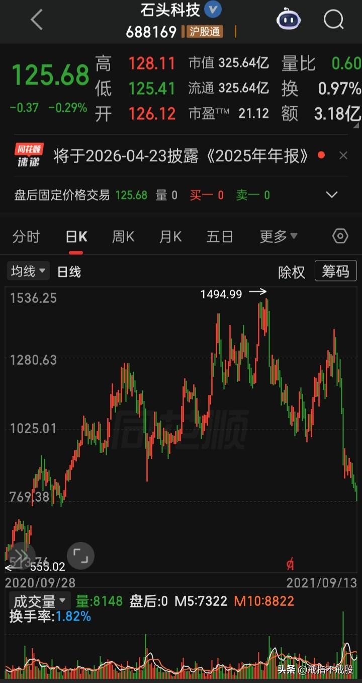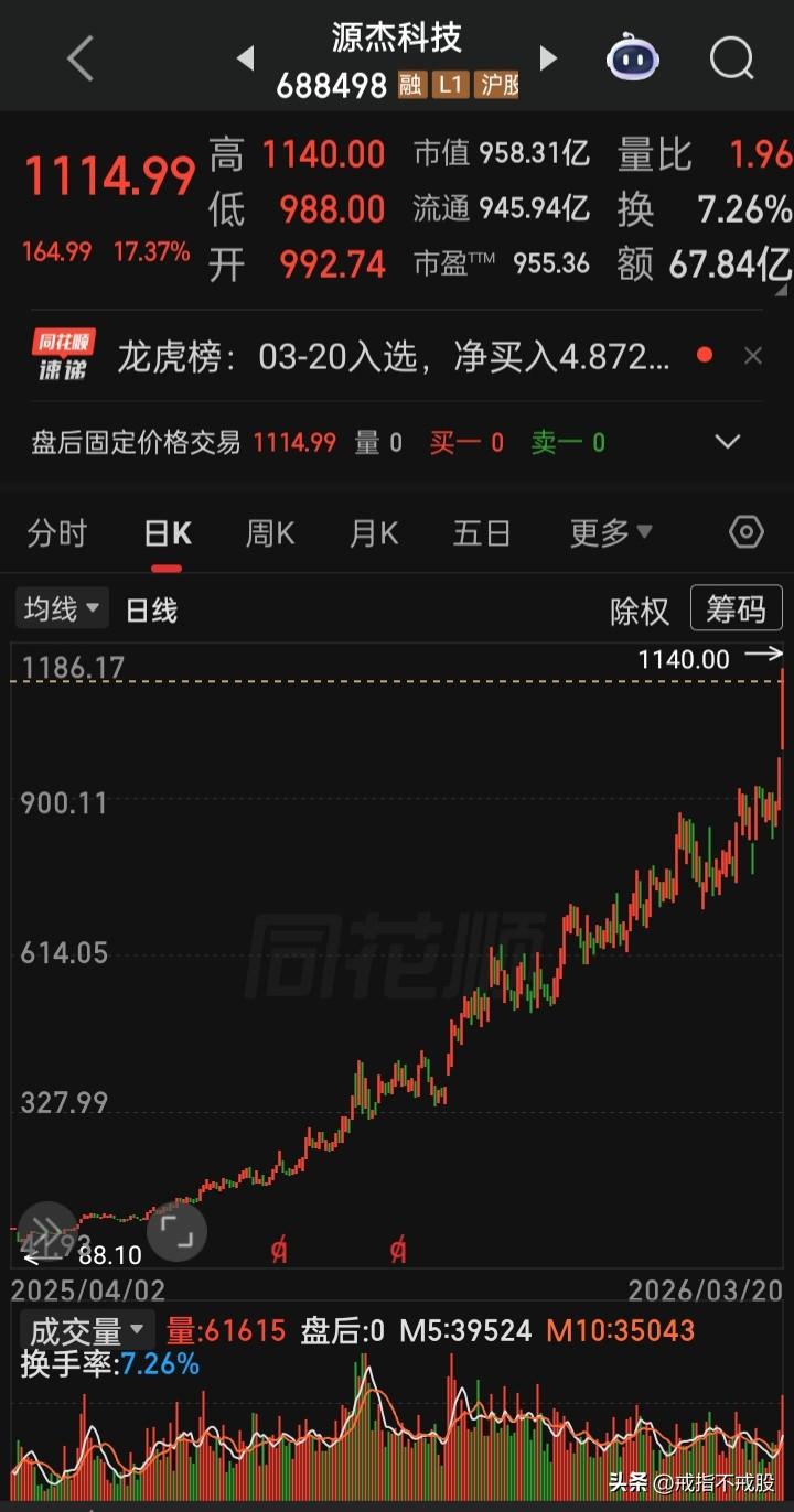 【A史千元股】“现价除权价” 1. 中安科(600654):1992年1月10日1007.40元(首只千元股),现价3.39元 2. 云赛智联(600602):1992年4月14日1030.10元,现价21.72元 3. 贵州茅台(600519):2019年6月27日首破千元,2021年2月18日见2627.88元高点,现价1445.00元 4. 爱美客(300896):2021年2月9日见千元,现价128.88元 5. 石头科技(688169):2020年12月16日见千元,现价125.68元 6. 禾迈股份(688032):2022年7月7日见千元,现价134.00元 7. 寒武纪(688256):2025年8月19日见千元,现价1025元 8. 源杰科技(688498):2026年3月20日见千元,目前1114.99元 9.会是谁的神话?