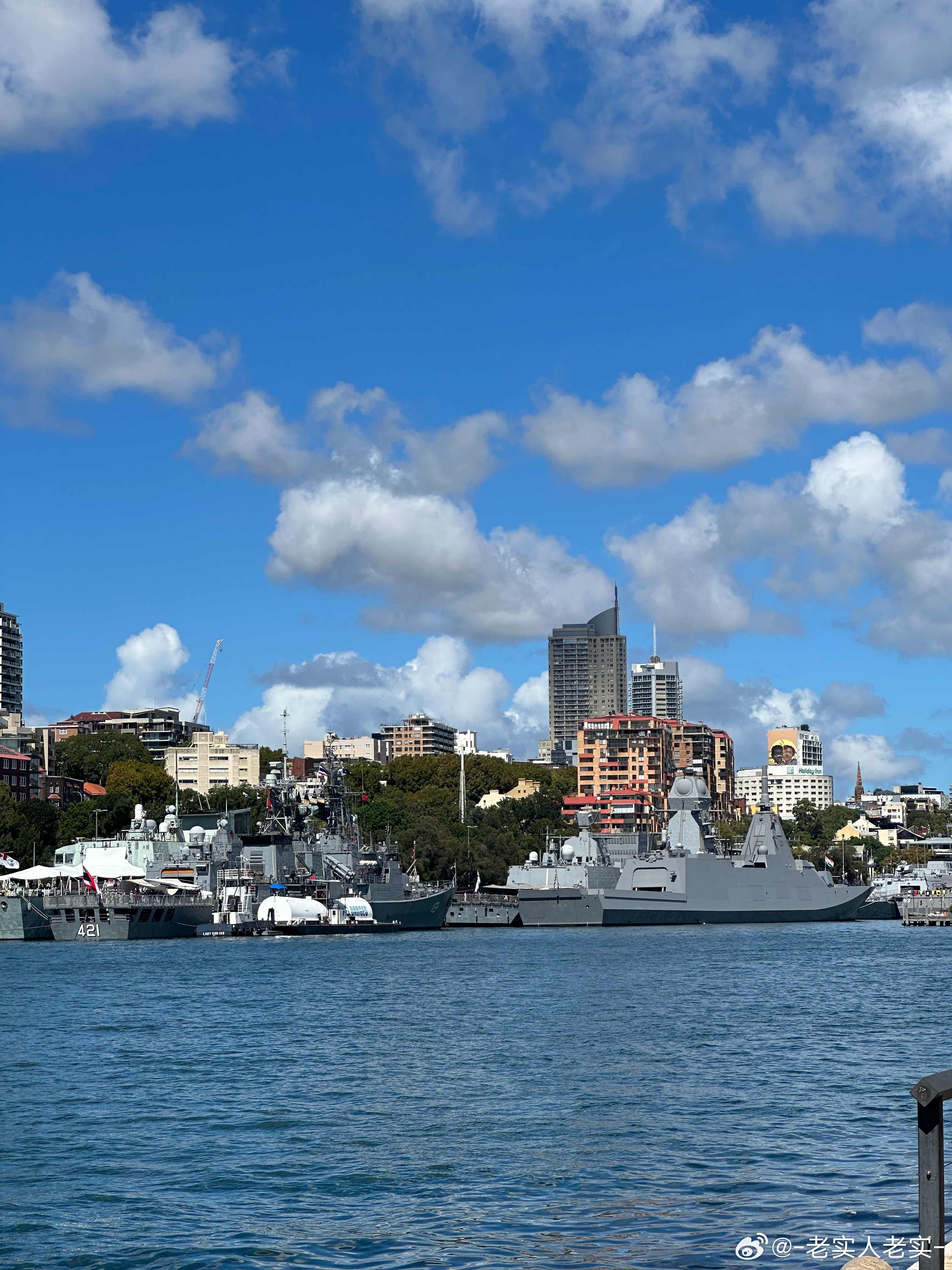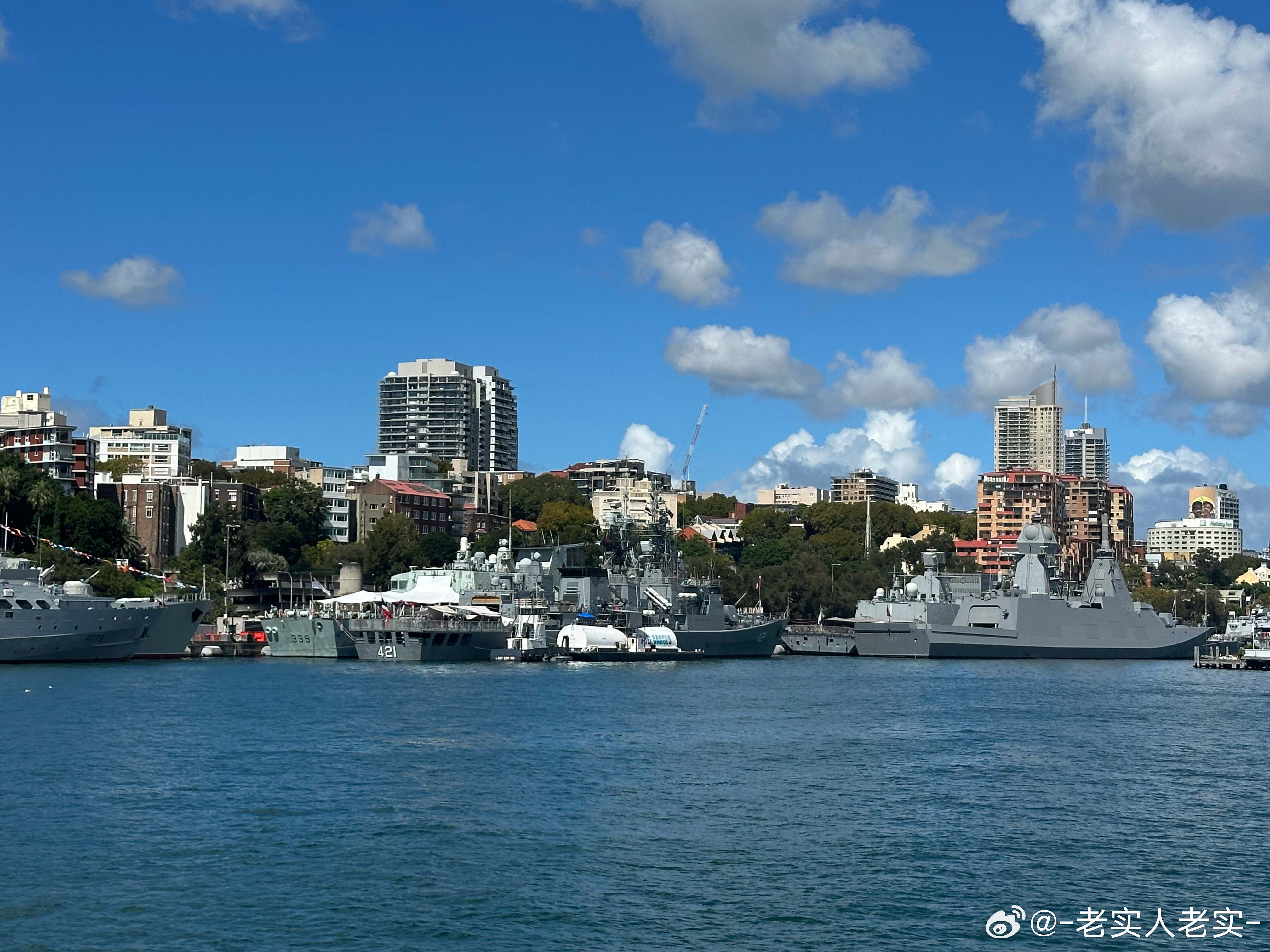 来悉尼港参加皇家澳大利亚海军125周年观舰式的各国舰艇,有猎豹,最上,还有博克级
