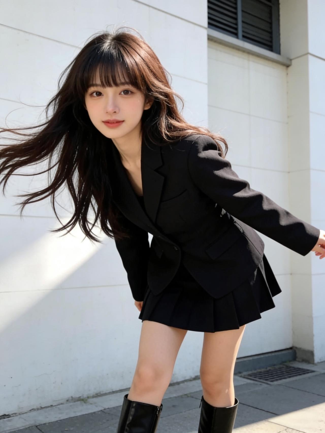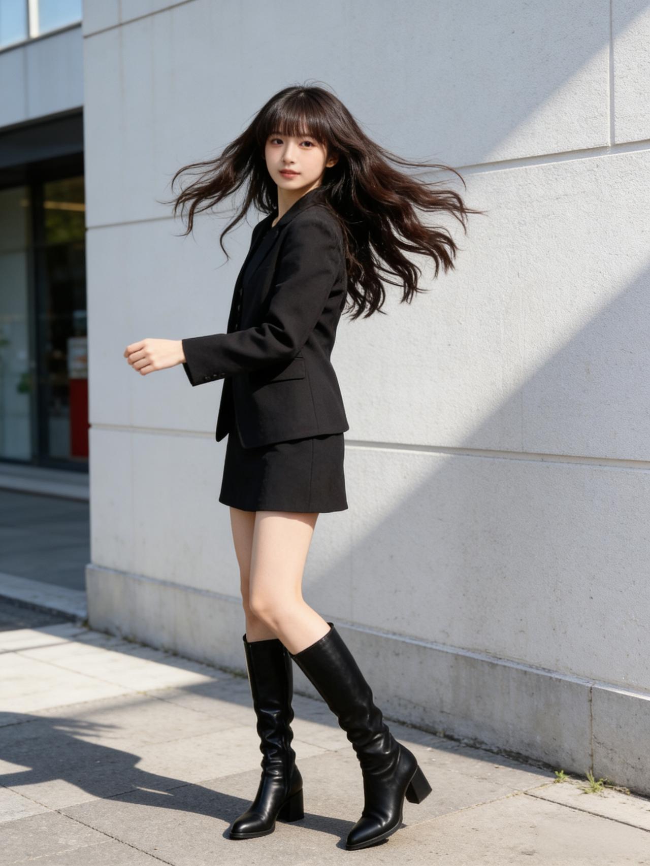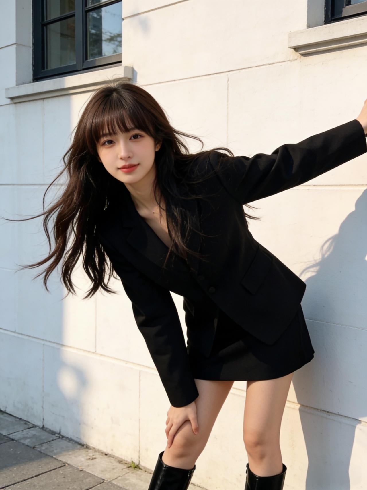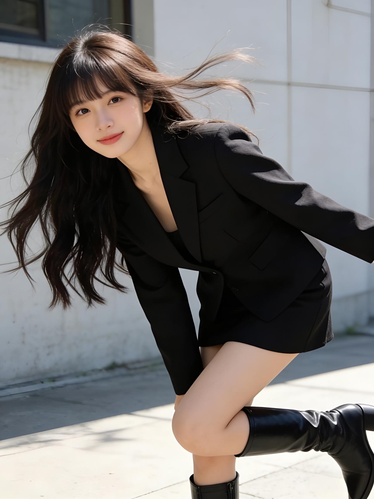 黑色西装外套,都市女郎的必备利器,利落剪裁勾勒自信轮廓。内搭简约白T或丝质吊带,瞬间提升精致度。下身搭配高腰A字短裙,恰到好处地展现腿部线条,俏皮中不失优雅。 选择黑色短裙,与外套形成同色系呼应,高级感十足。搭配一双尖头高跟鞋或帅气短靴,气场全开。时尚 穿搭 气质穿搭