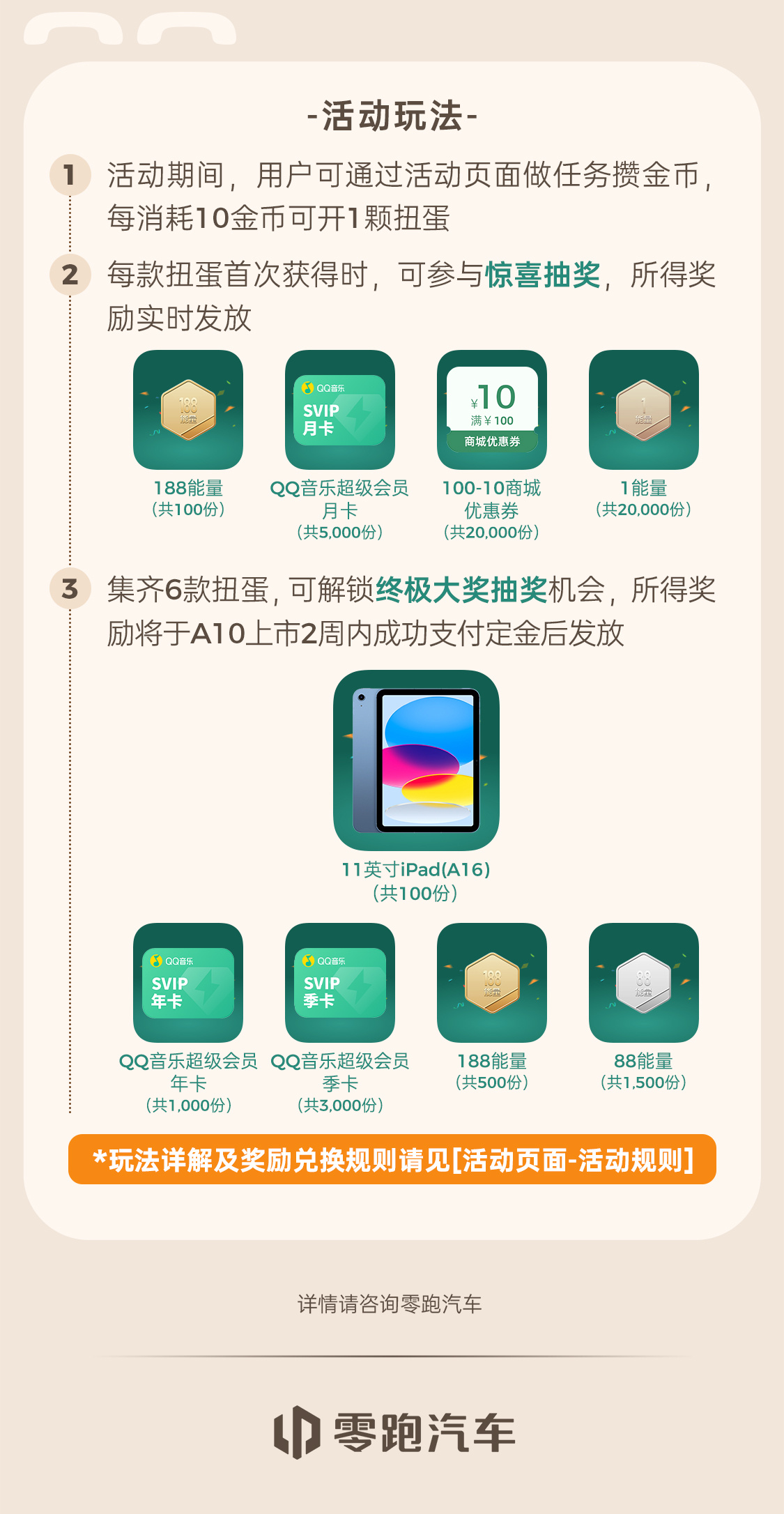 更有QQ音乐超级会员、零跑APP能量值奖励等惊喜!左滑查看完整攻略,戳链接参与:网页链接