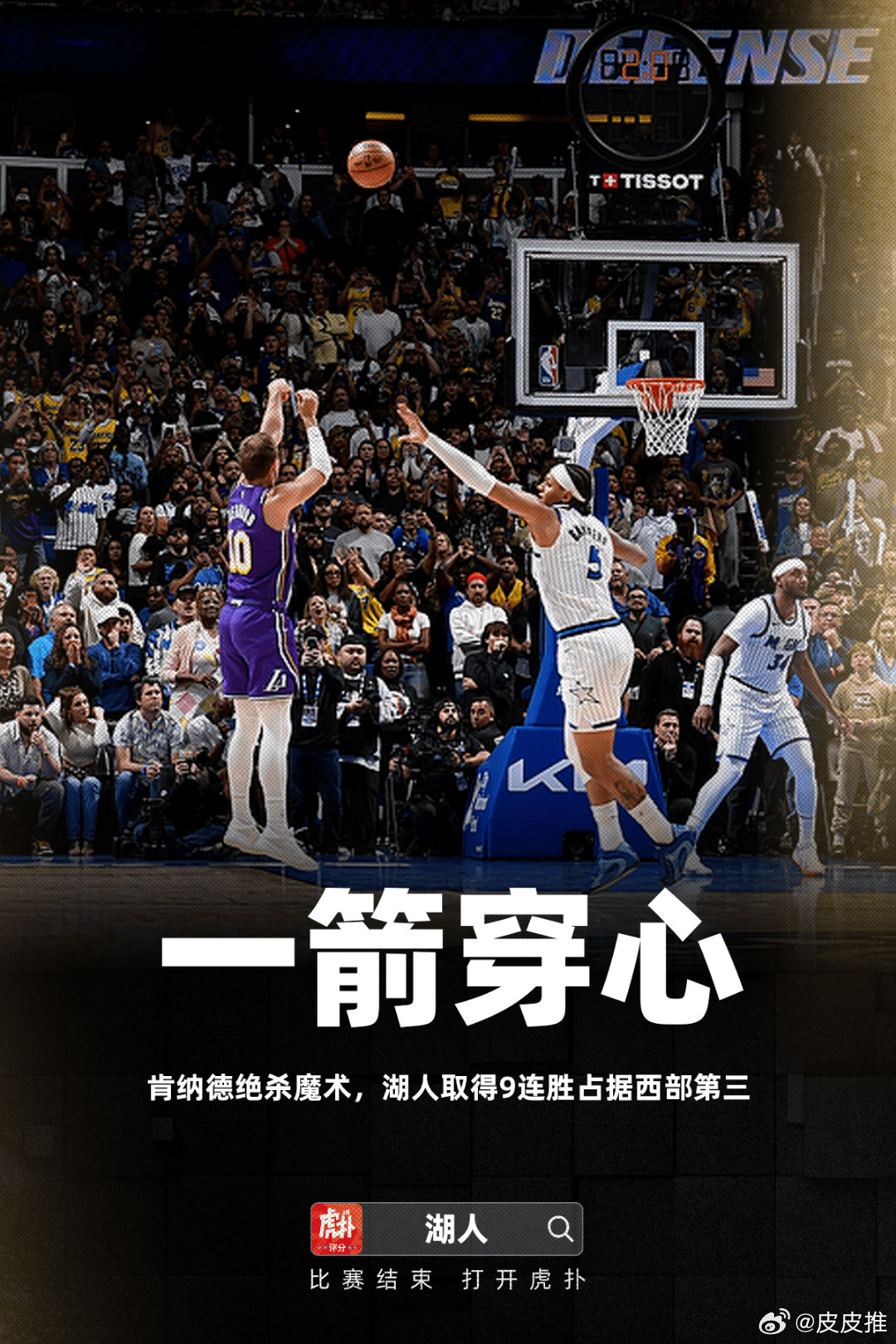 肯纳德三分绝杀今天湖人对阵魔术,整场比赛两队比分焦灼,最后时刻,肯纳德站了出来成功命中三分,湖人以1分险胜魔术。
