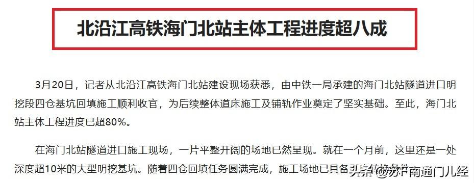 高铁海门北站主体工程进度已超80%!作为江苏首个建成的地下高铁站,海门北站地面考