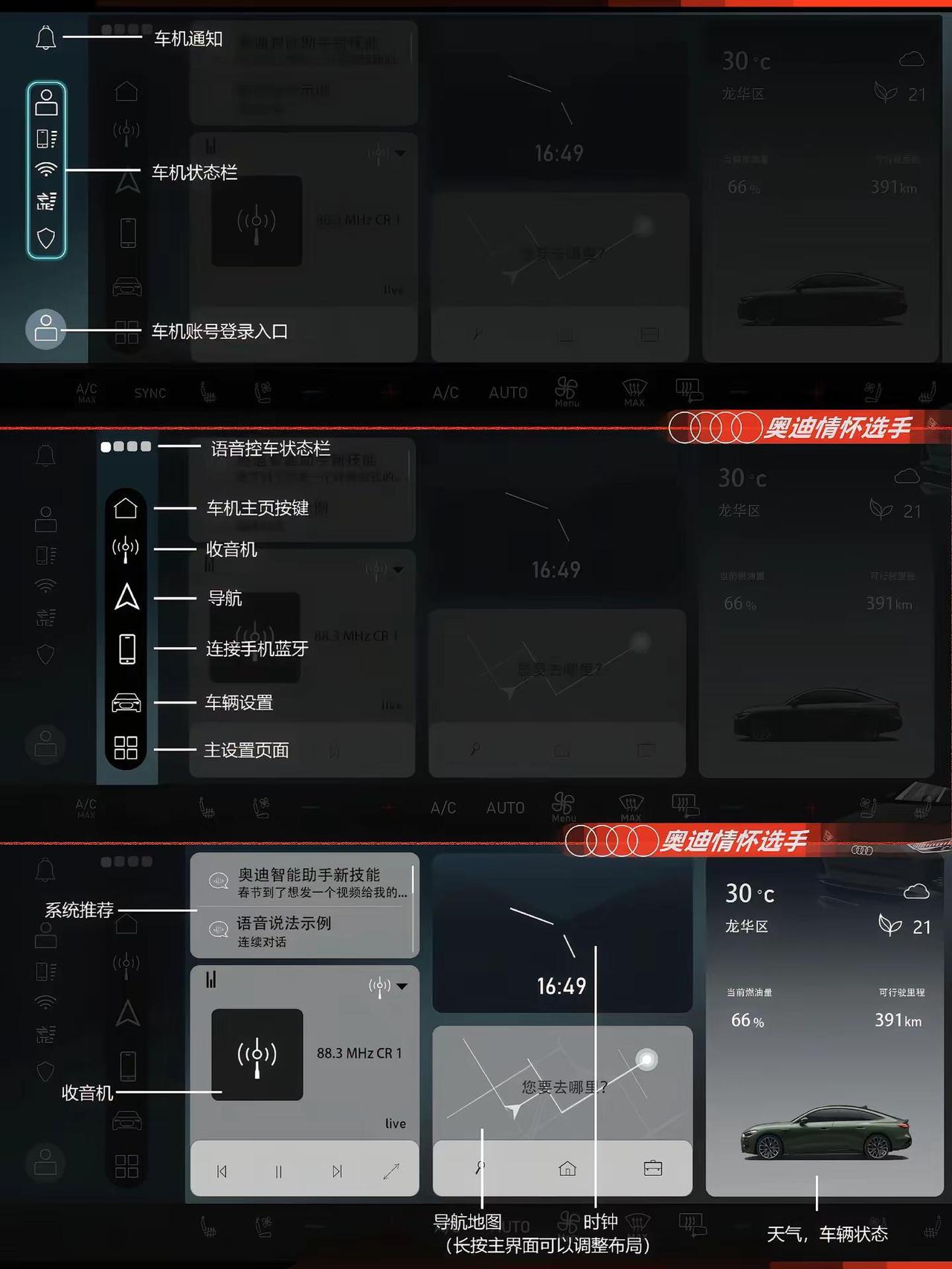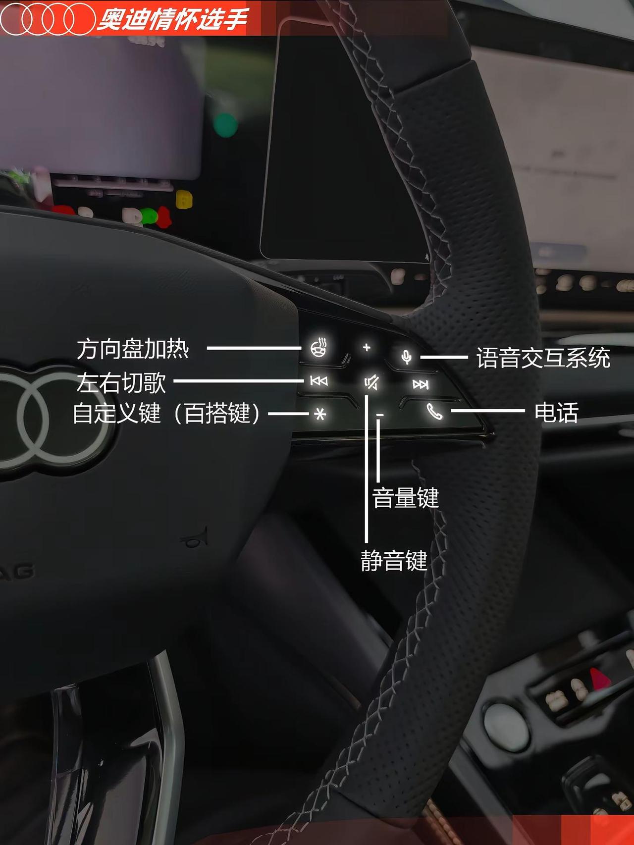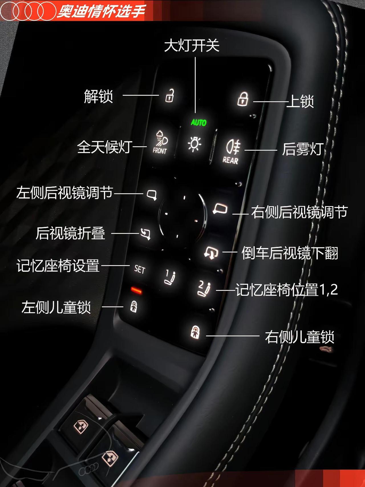 奥迪A5L开关按键图文功能说明。奥迪A5L按键图文使用说明 奥迪A5L功能说明 奥迪A5L说明书 奥迪A5L开关图文说明 奥迪A5L方向盘上的按钮 奥迪A5L用车说明知识 奥迪A5L功能使用讲解说明 全新奥迪A5L按键图文说明奥迪用车小知识 奥迪使用说明书 奥迪A5L 奥迪A5L功能