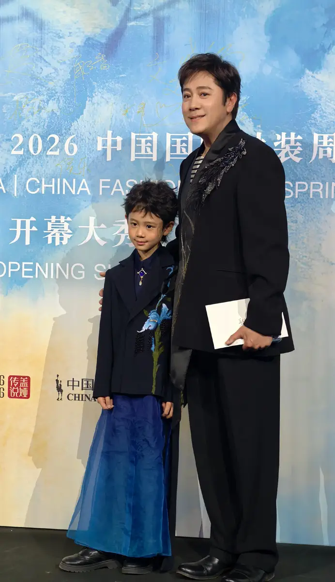 蔡国庆晒与二儿子合照!庆宝穿新中式服饰走秀自信大方