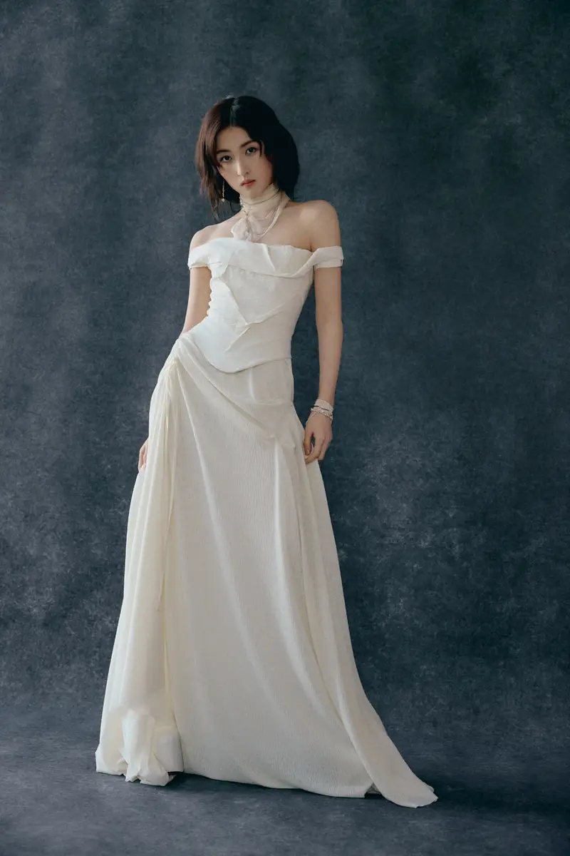 张子枫穿一字肩长裙神秘矜贵 垂眸沉思好似神女降临