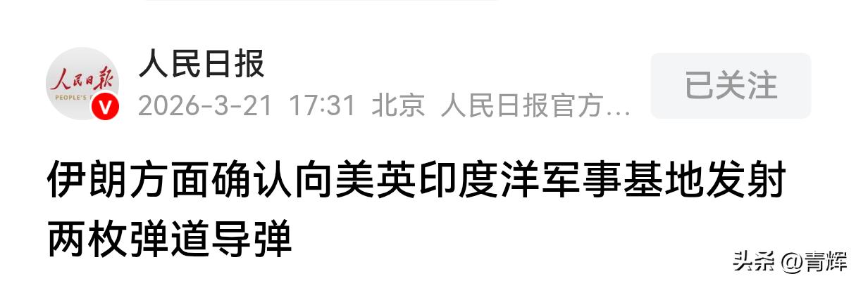 美国:不是说伊朗的导弹超不过2000公里吗?这是咋回事? 伊朗战争目前已经打到了第3周,这个国家已经明确宣布不接受任何形式的谈判,伊朗就是想要全面深入的战争。3月20号,伊朗发射了两枚中程导弹,发射方向是位于迪戈加西亚岛的美英联合军事基地。虽然美国声称这两枚导弹其中一枚被自己拦截,另外一枚在中途就发生了故障坠毁,但是这件事情还是引发了极其广泛的关注。 因为该处美军基地远离伊朗,甚至远离中东,处于印度洋的中部,从这里出发到伊朗接近4000公里。而在此之前,包括美国在内的国际社会一直普遍认为伊朗并没有射程超过2000公里的导弹。所以伊朗战争爆发以来,美军非常放心的从该处基地派遣军事力量前往中东作战。 然而这次伊朗对该处美英联合军事基地的攻击直接打破了这种幻想。虽然导弹被拦截,但是这证明了伊朗确实有可以攻击3000~4000公里距离的这种导弹。这对于美军来说,将会产生极其强大的威慑力,尤其是远离中东的一些美军基地在参与对伊朗攻击行动的时候,将不再是“我能打你,但你不能打我”的这种情况了。