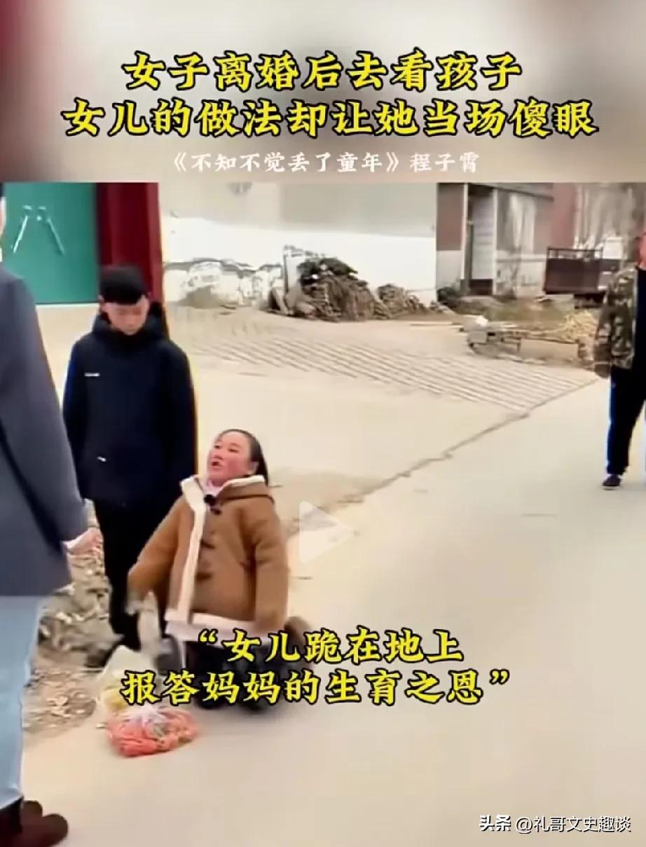 女子离婚后,提着东西来看孩子,看到这一幕她的心碎了。女人离婚以后还一直挂念着孩子,这一天他带着礼物来看两个孩子,本以为俩孩子看到他会很高兴,很欢迎。 让他万万想不到的是,女儿看到他以后,给他跪下,磕了两个头,算是报答他的生育之恩。扭头拉着哥哥回家了,女人瞬间愣了,不知道咋应对了,孩子把她带来的吃的放在路边。孩子这是和她一刀两断,从此互不干扰。