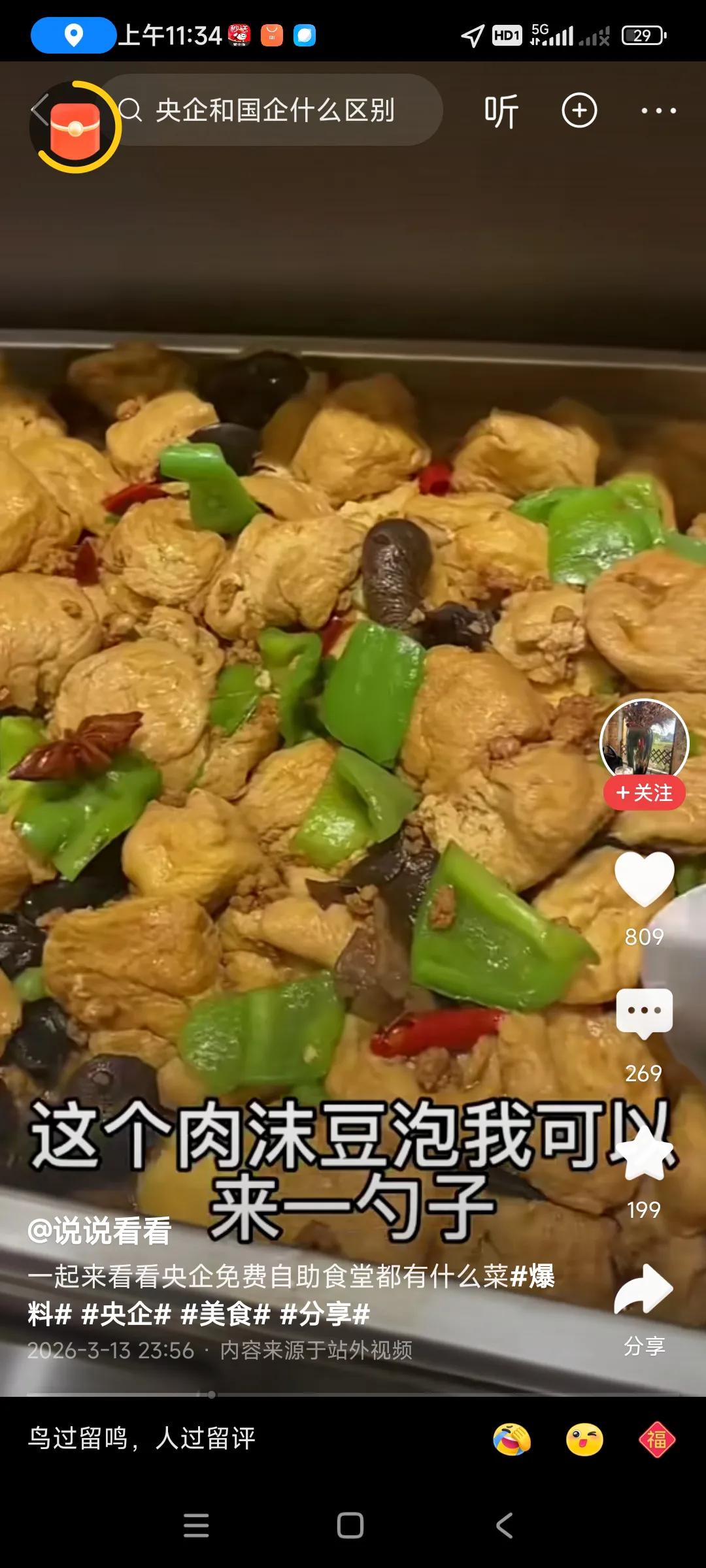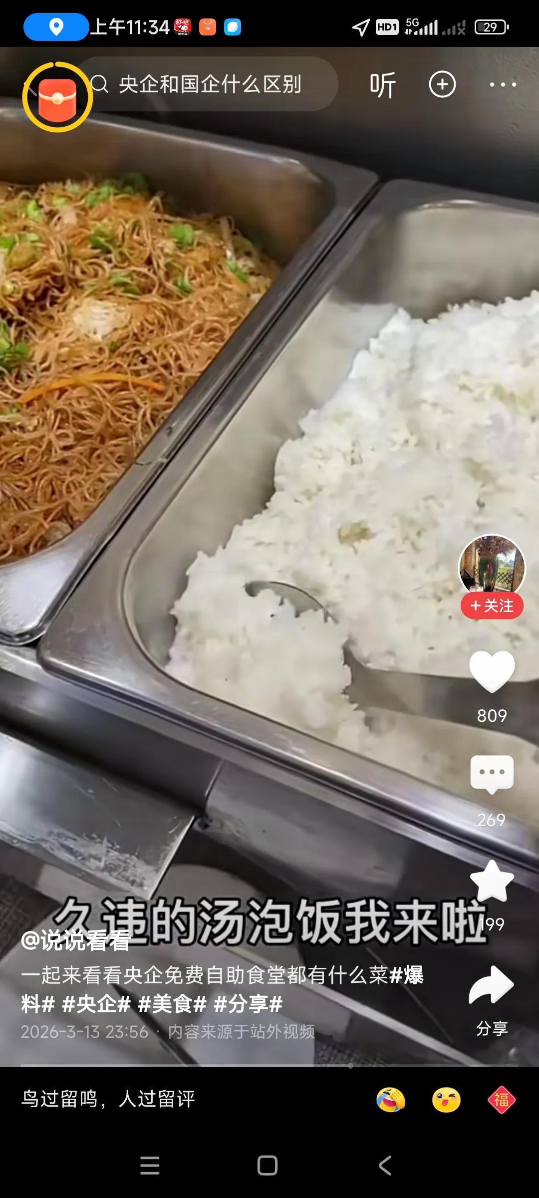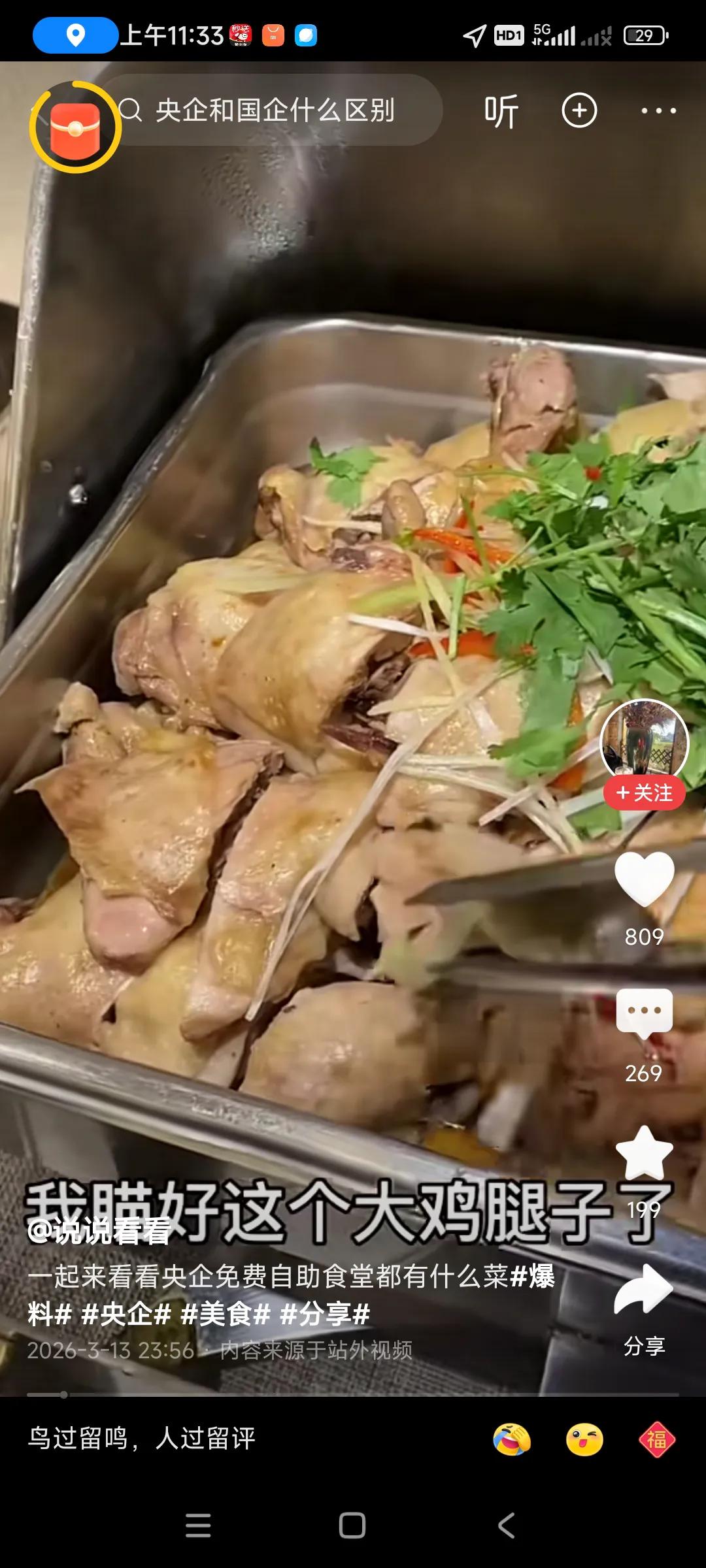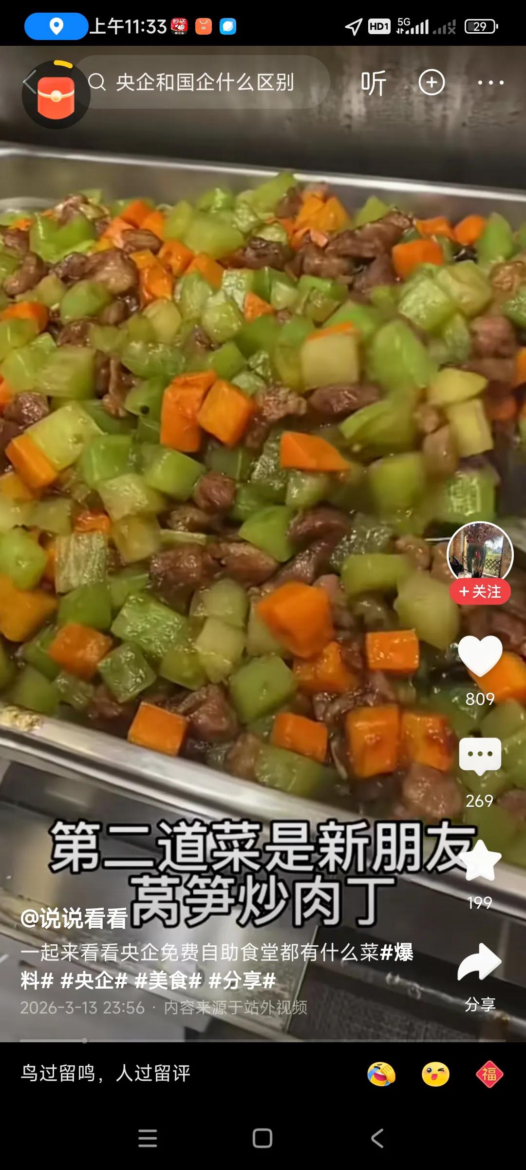 转发网友的,说的是央企免费工作餐,吃的太好了,看上去色香味俱全,干净,卫生,上档次,,, 我估计,要是外面要吃到这些美食,估计要200元,还没有这么好吃,, 人家用的油,调味料,原料,都是菜市场买最好的,最新鲜的,私人老板为了赚钱,买最便宜的,才能赚更多钱,[捂脸][捂脸]