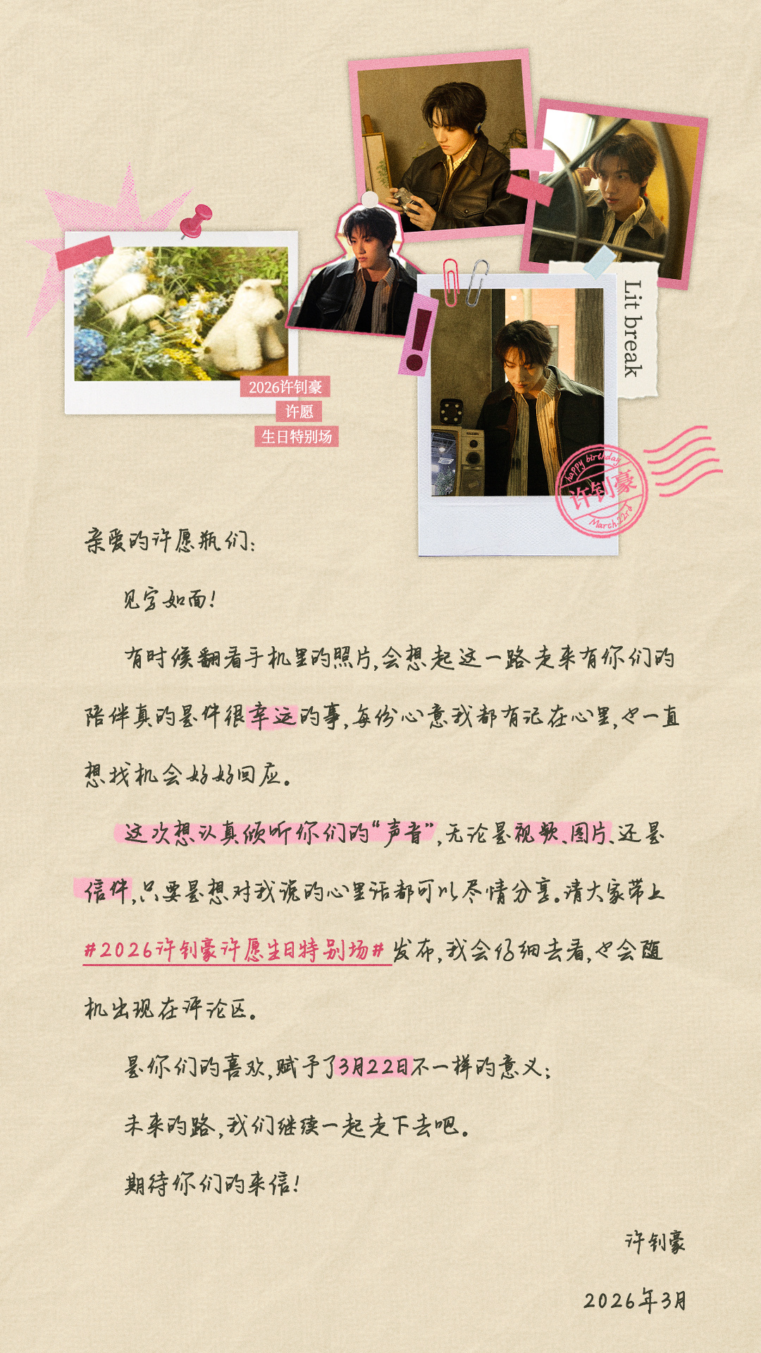 2026许钊豪许愿生日特别场 说实话,这个生日会真的值得一看✨我挖到了直播完整观看路线→先来下午13点轻松惊喜场,近距离看豪豪、顺便薅“宠粉羊毛”🎁再来晚上19点正经生日音乐会,🥢👋独播仅13.14元,直播有、回放有、宠粉福利也有。想看、喜欢、想陪伴的许愿瓶们,搜索“许钊豪”主页别错过,简单又划算。2026许钊豪许愿巡演许钊豪322生日会