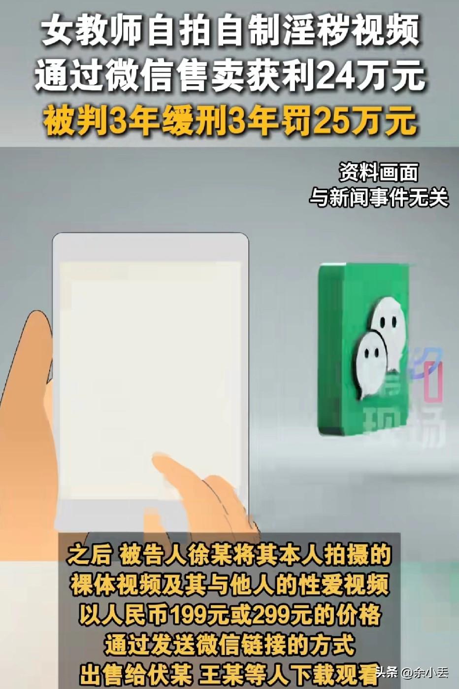 98年女教师拍不雅视频获利24万,判3缓3罚25万,深圳高管办公室偷吃被开除:体面,是成年人最后的底线 最近两则新闻看得人心里五味杂陈,一个是98年的女教师,一个是深圳企业的高管,身份体面,却都亲手毁了自己的人生。 98年出生的徐某,本是湖南祁东一所职业中专的女教师,有本科学历,有稳定工作,本该是教书育人、受人尊敬的身份,却偏偏走上了歪路。 2023年9月开始,她就通过微信群发“闪照”引流,吸引男性加好友,之后把自己拍的裸体视频、性爱视频,以199元、299元的价格,通过微信链接售卖,短短时间就获利24万元。 直到被查,她才为自己的行为付出代价,被判3年有期徒刑,缓刑3年,还要交25万元罚金,工作没了,名声毁了,一辈子都要背着这个污点。 无独有偶,深圳一家企业也发了公告,曝光前副总和另一家公司前副总,不仅内外勾结侵吞公司资产,还在办公室公然做出违背公序良俗的事,直接被开除,还要被追究刑事责任。 一个是为人师表的教师,一个是身居高位的高管,都有着旁人羡慕的身份和生活,却因为一时的贪念、放纵,把好好的人生过得一塌糊涂。 其实人这一辈子,不管身处什么位置,都要守住底线。教师的底线是师德,职场人的底线是品行,一旦底线破了,再体面的身份也没用,再光鲜的生活也会瞬间崩塌。 钱可以慢慢赚,职位可以慢慢升,但人品和底线一旦丢了,就再也找不回来了。 做人做事,守好本心,守住体面,才是对自己最好的负责。 教师违规行为