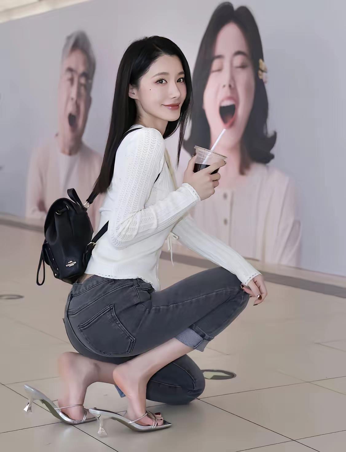 第一次见这么大的脚,穿高跟鞋还这么好看。