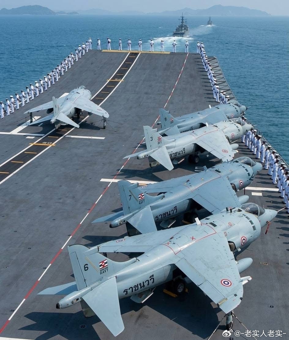 东南亚小霸王曾经的辉煌:泰国皇家海军的海鹞。总共从西班牙订购9架二手封存货,给查克里王朝号轻型航母准备,结果妥善率感人,再加上98年的金融危机重创泰国财政,只能退役进入博物馆,而航母目前也只能当直升机母舰用,连出港都少了军事历史全触达中外舰闻外军影像
