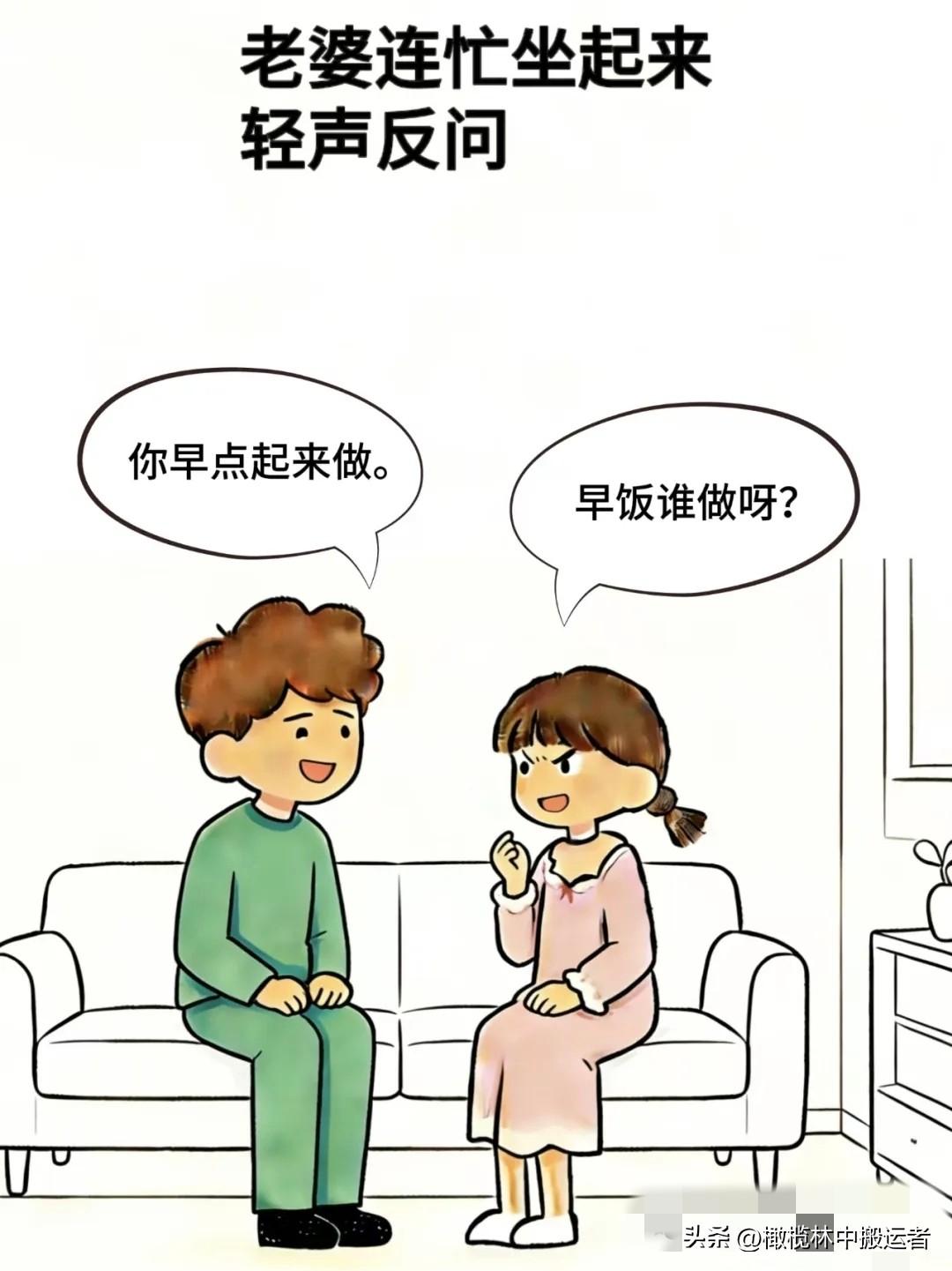 趣味漫画:老公:孩子上学去了,你天天躺着还是找个班上,老婆:早饭谁做,老公:你早