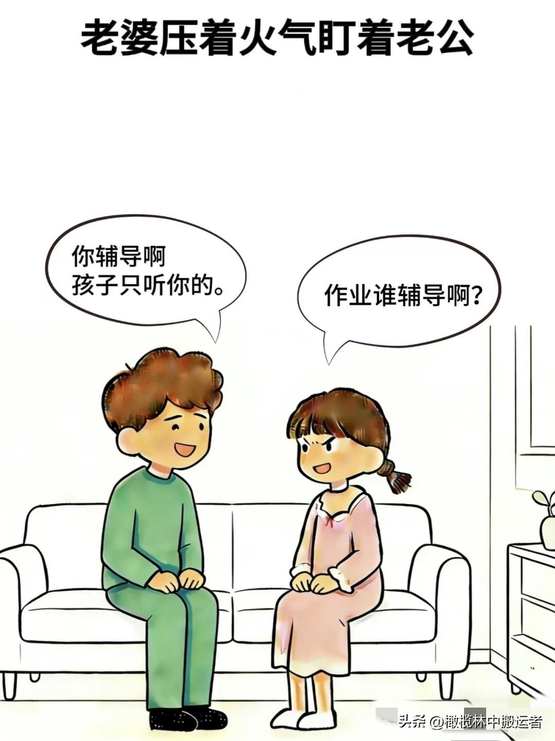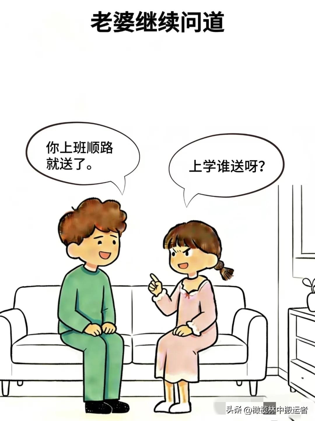 趣味漫画:老公:孩子上学去了,你天天躺着还是找个班上,老婆:早饭谁做,老公:你早点起来做,老婆:上学谁送呀老公:你上班顺路就送了
