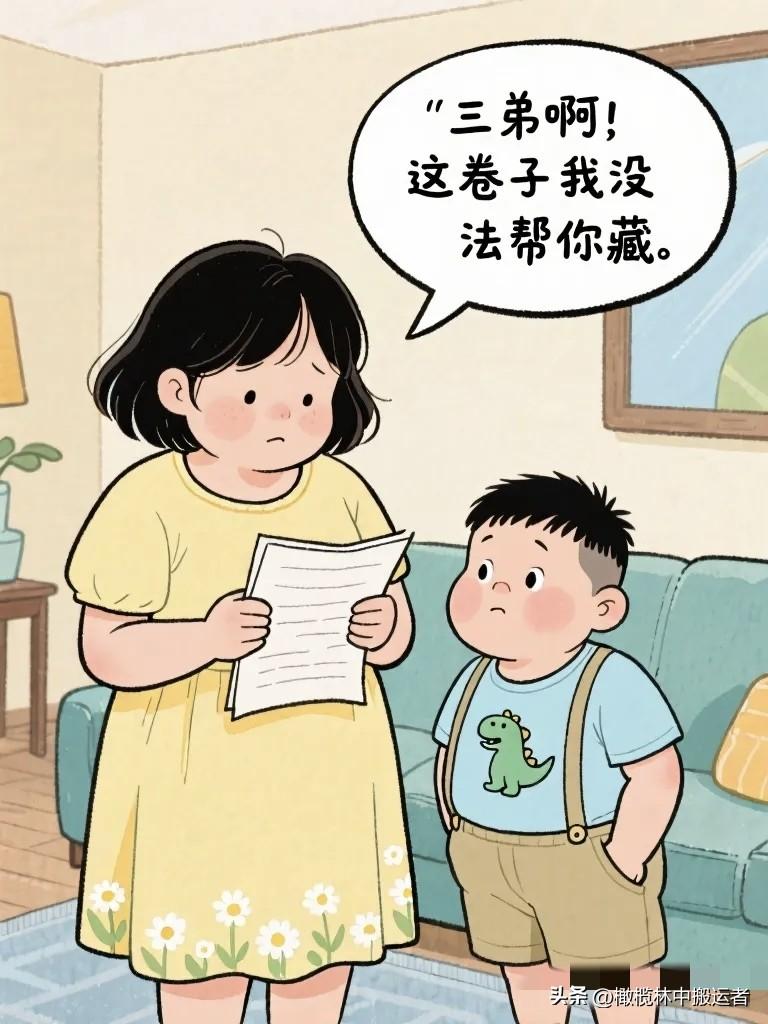 搞笑漫画:弟弟考试考了59分,心虚地把卷子递给姐姐:“姐,你帮我藏一下,妈看见要
