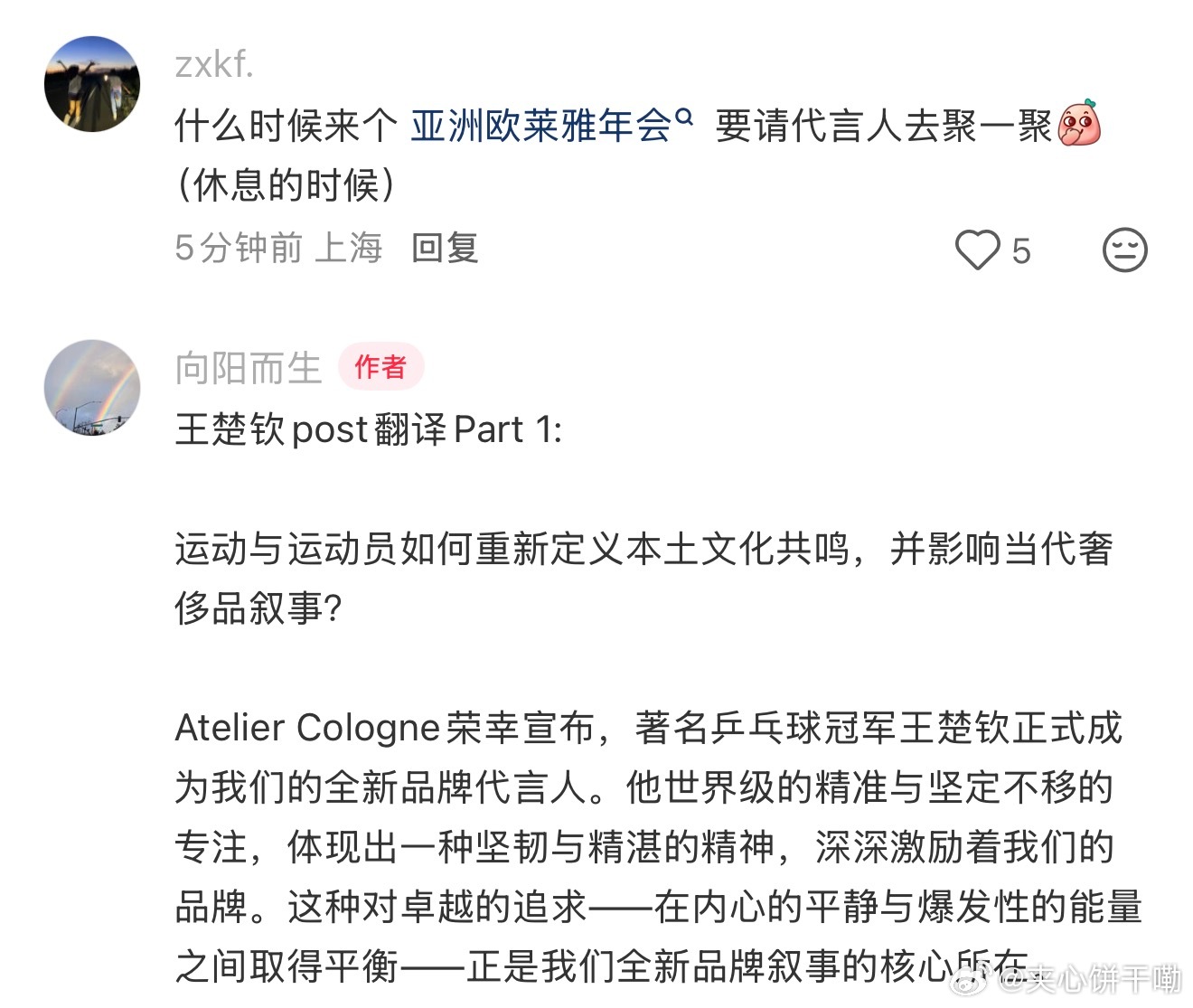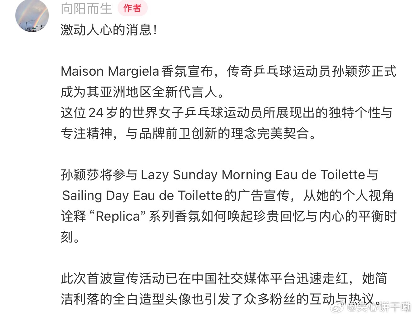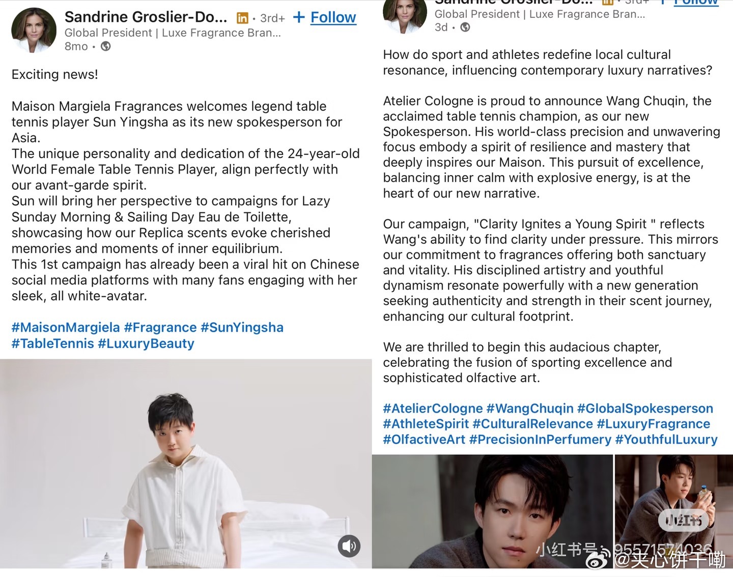 欧莱雅全球香氛负责人谈代言人都强调了孙颖莎和王楚钦的个人品质和精神内核与品牌的契合度🥰