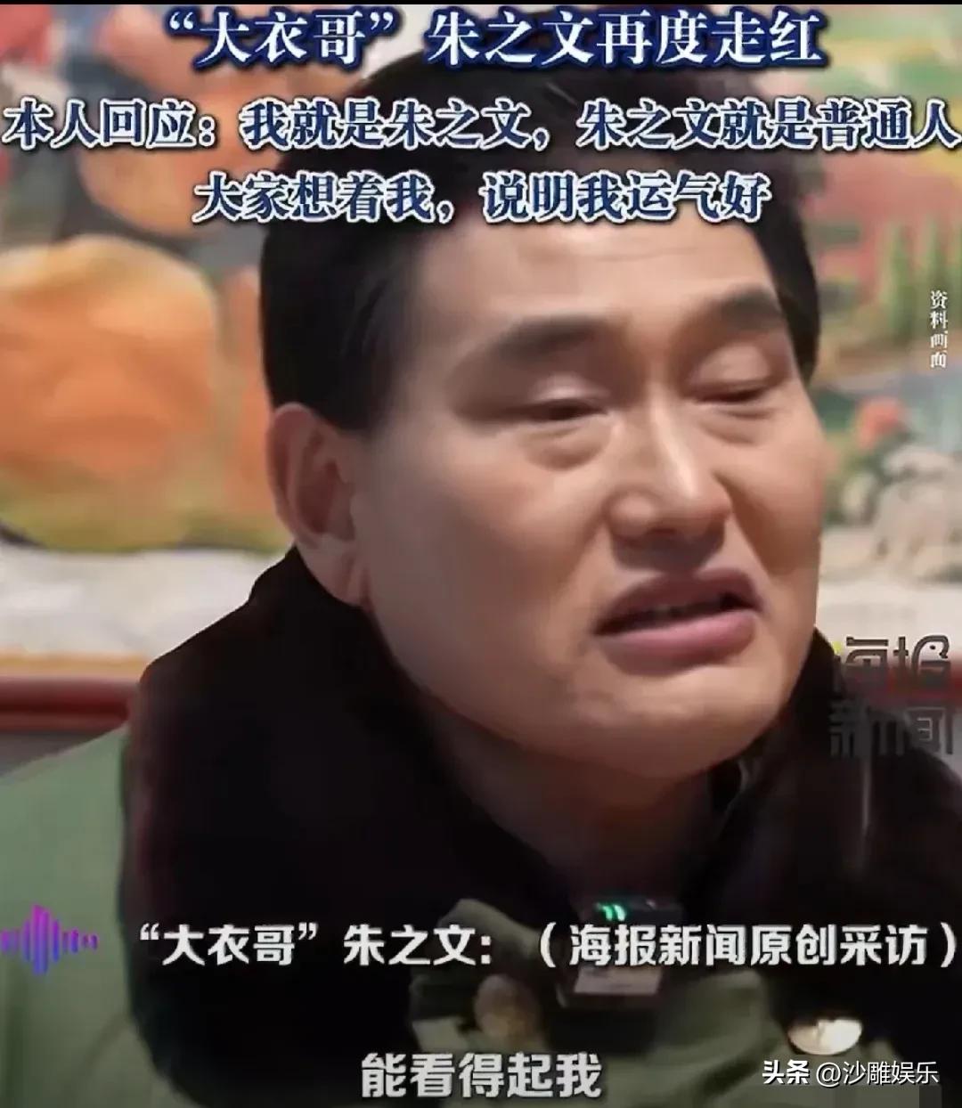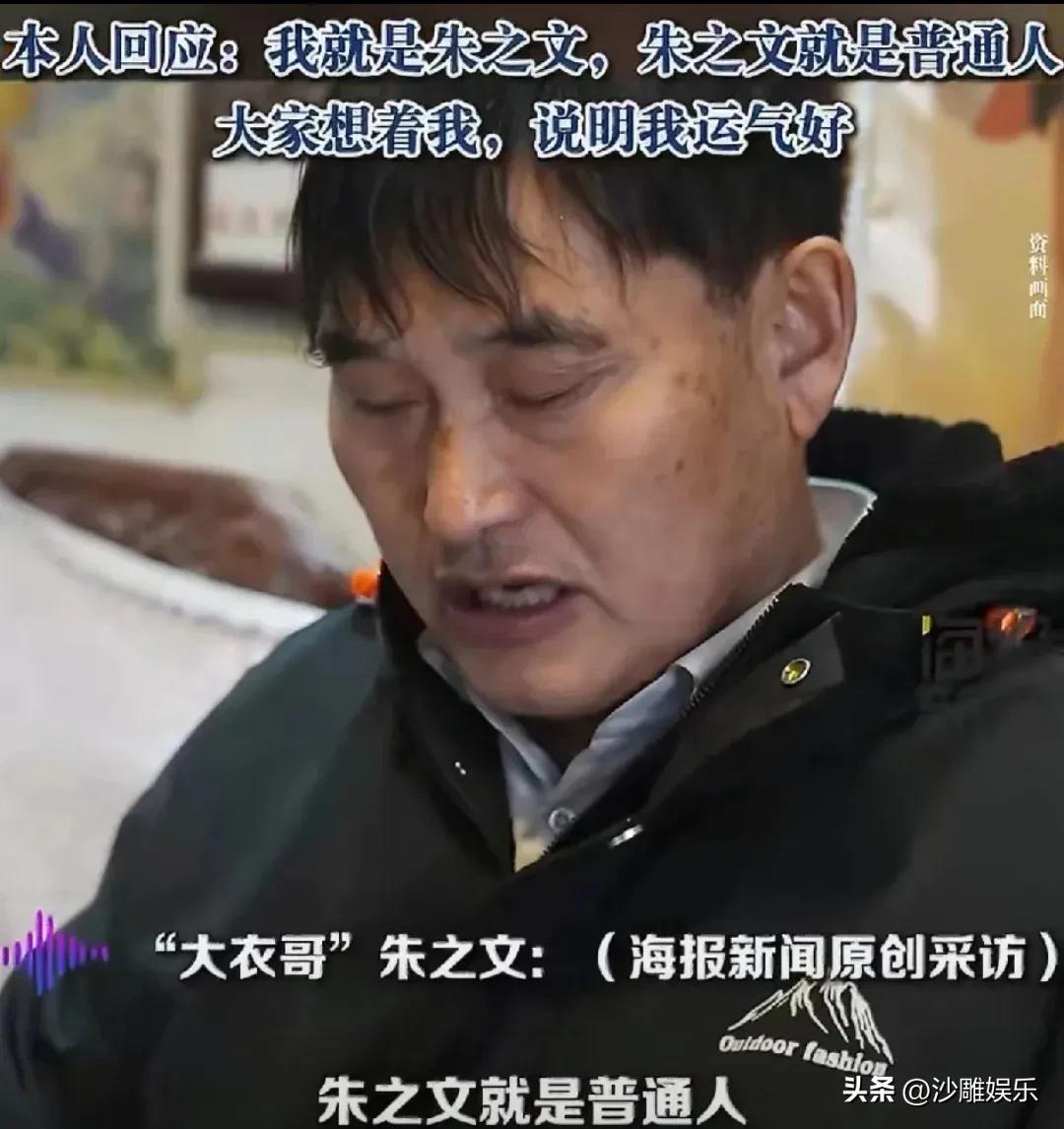 朱之文,正面回应! 3月21日,许久没消息的朱之文突然登上热搜榜,这次不是因为他唱歌,也不是因为村民围堵,而是因为一句“你就是朱之文”在网上被玩出了花。 网友们模仿他的腔调、表情,各种二创视频刷屏,让这位15年前从《星光大道》走出来的草根歌手,又一次火得一塌糊涂。 事情的起因其实很简单。前段时间在山东菏泽的一次采访中,朱之文面对镜头聊起了这个突然爆火的梗,态度出奇地淡定。他说了这么一段话:“朱之文就是普通人,跟大家都是一样,大家能想着我,能看得起我,我觉得很有运气。” 就这么一句朴实无华的回应,反而让网友们更加上头了。 回顾一下大衣哥的成名史,当年他穿着一件破旧的军大衣登上《星光大道》,一首《滚滚长江东逝水》唱得全场震惊。那时候的朱之文,是真正的草根逆袭,农村出身、没有专业训练、靠着天赋和热爱硬生生闯出了一条路。 但走红之后的代价,大家也都有目共睹。他家门口常年被围得水泄不通,村民和主播们举着手机24小时拍摄,连上厕所都有人跟拍。最夸张的一次,他家的大门被人强行踹开,个人隐私被扒得干干净净。这些年,他始终活在镜头和流量的围剿之下,想做个普通人都成了奢望。 这次因为一个梗再次翻红,说实话挺意外的。网友们的玩梗热情极高,评论区里清一色的“你就是朱之文”“俺是朱之文”,各种模仿视频点赞量动辄几十万。有人调侃说:“大衣哥自己都没想到,15年后靠口音又火了一次。” 但更让人感慨的,是朱之文本人的态度。换做别人,被网友这样玩梗,多少会有点不舒服,可他愣是看得开,把这归结为“运气好”。这种不端着、不矫情的姿态,确实让人服气。 网上有人评论说:“大衣哥红了这么多年,心态一直没变,还是那个朴实的农民。” 也有人说:“他才是最清醒的那个,知道自己是谁,不飘不躁。” 还有网友直言:“那些围着他拍的村民,现在还在拍,但大衣哥该种地种地,该唱歌唱歌,这份淡定是真厉害。” 其实仔细想想,朱之文的走红和翻红,背后折射出的东西挺值得琢磨的。一个草根歌手,15年了还能被大家记住,靠的不是炒作,不是营销,而是那份始终如一的真实感。在这个人设崩塌比翻书还快的时代,他反而成了娱乐圈里最“稳”的存在。 当然,这份走红背后也有无奈。他渴望正常的生活空间,却始终无法摆脱被围观的命运。这次因为一个梗重新被推上风口浪尖,对他来说,既是热度,也是新一轮的打扰。 但不管外界怎么喧嚣,朱之文还是那个朱之文。该唱歌唱歌,该生活生活,这种在流量洪流中保持清醒的本事,才是真正让人佩服的地方。