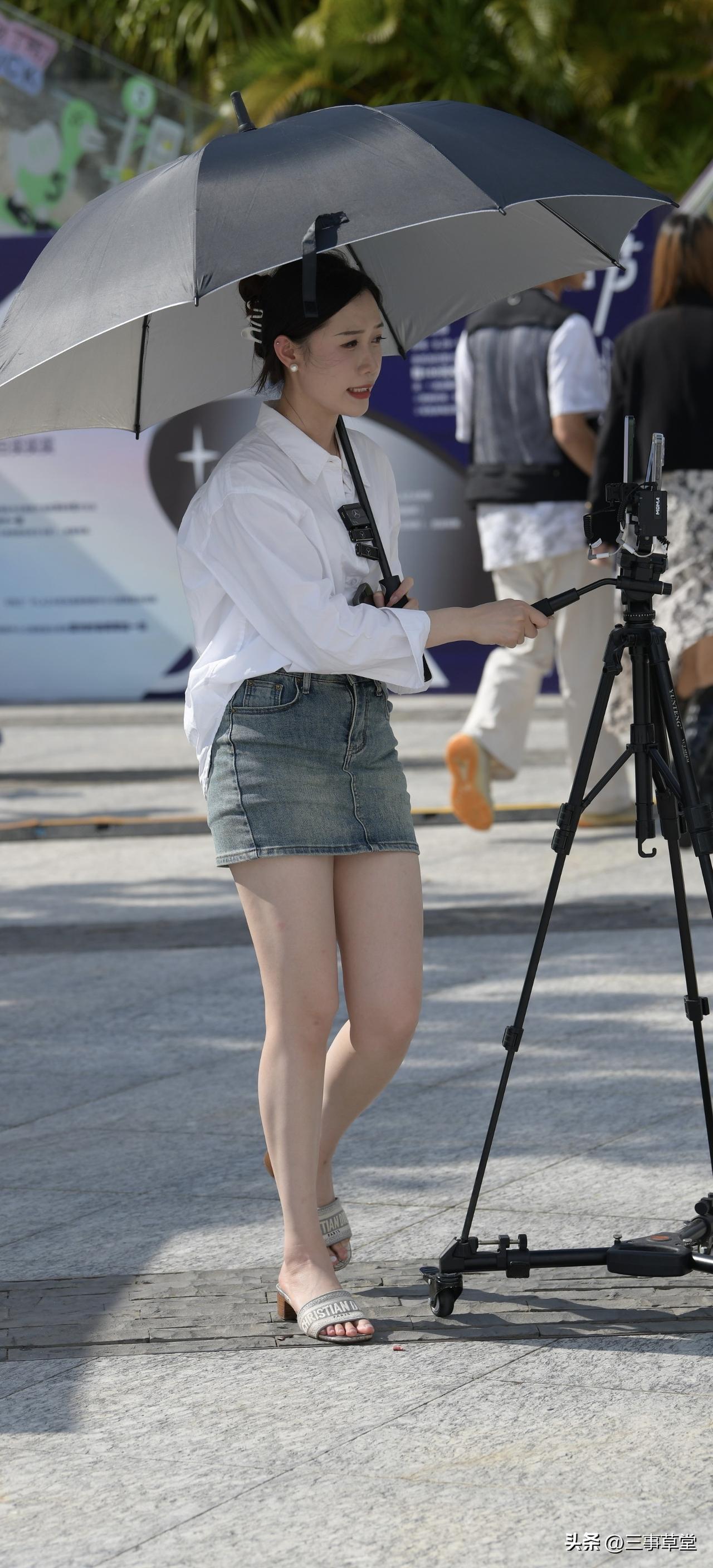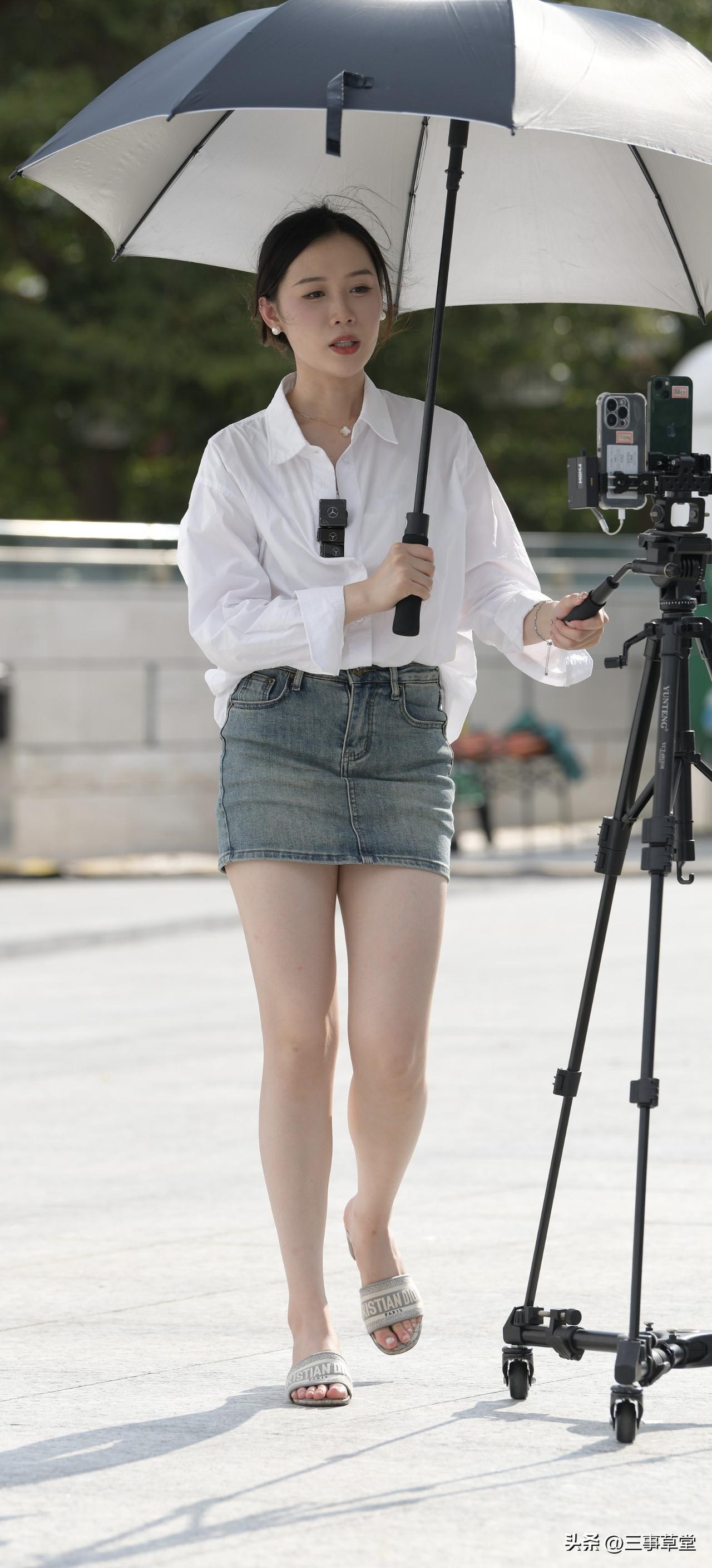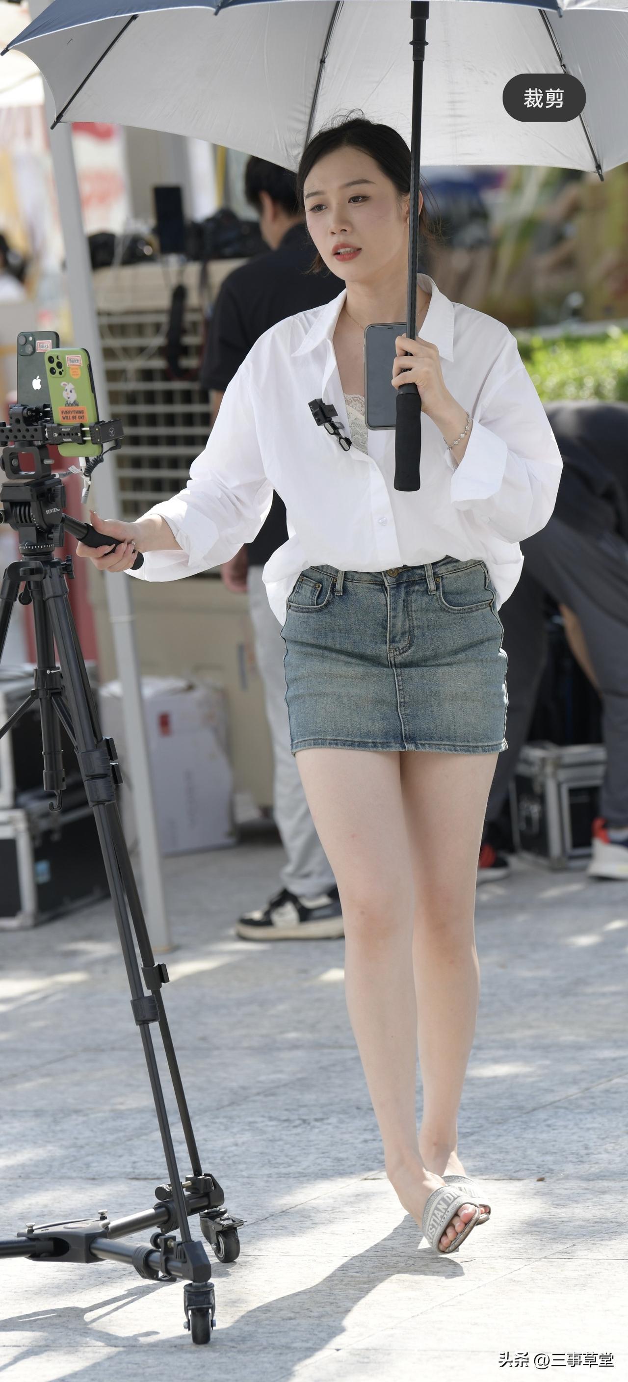 普通美女拍照能有多好看?白色衬衫牛仔裙直播小姐姐