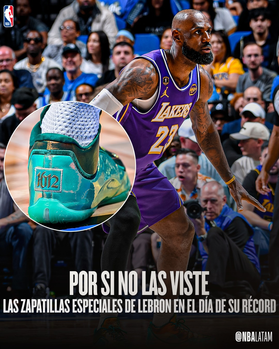 太帅了!詹姆斯今日上脚Nike Lebron23 PE,NBA常规赛历史出场场次第一人(1612场)。本场出战34分钟,投篮13中5,罚球2中2,得到12分6篮板4助攻3抢断。詹姆斯