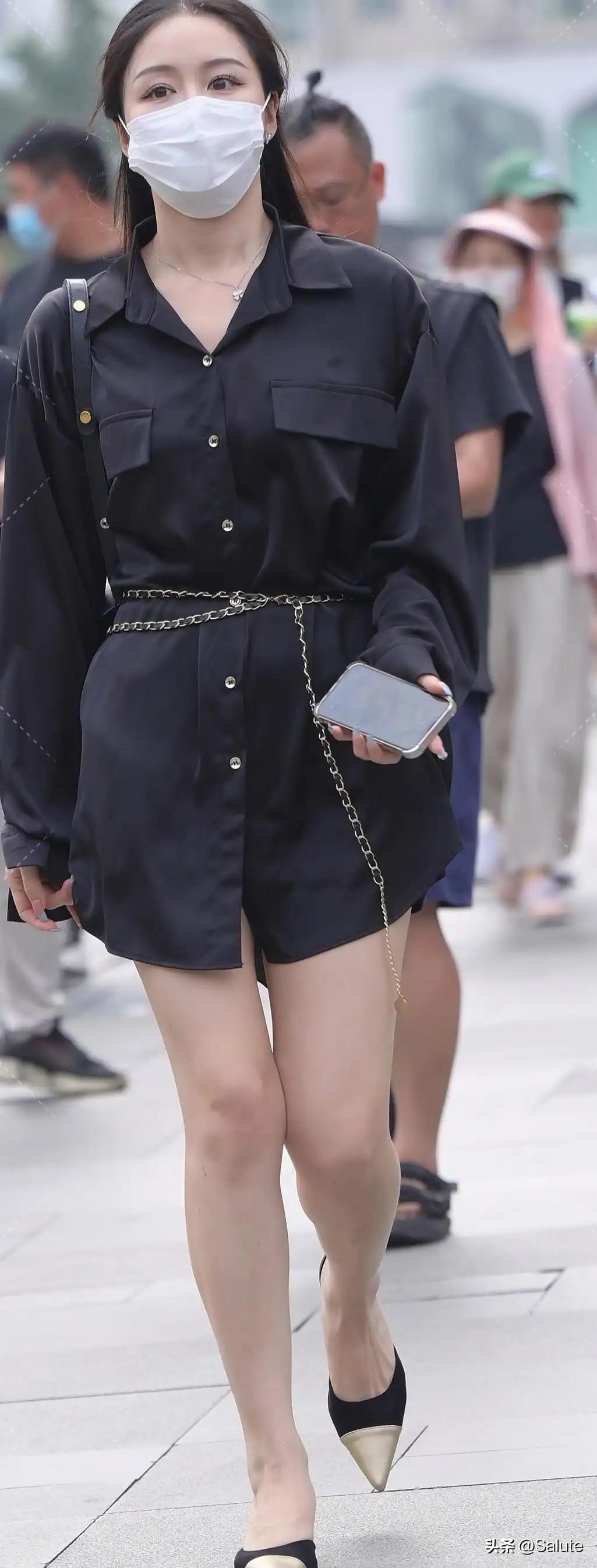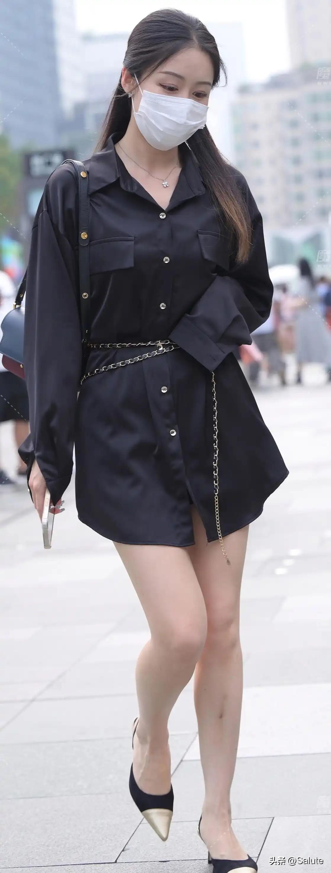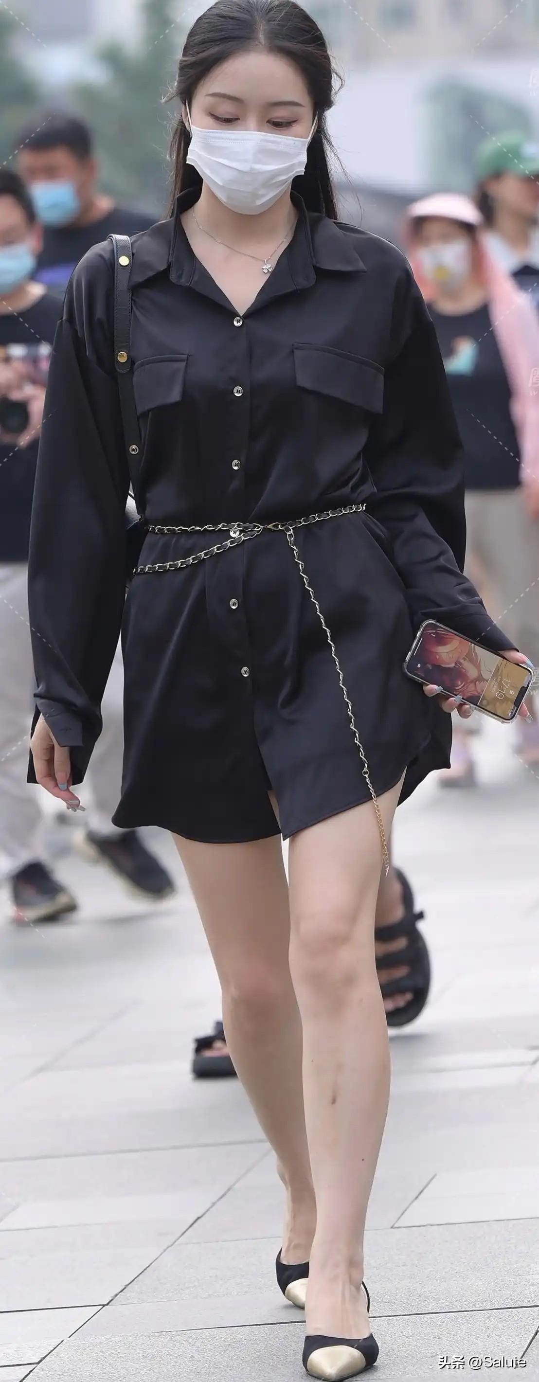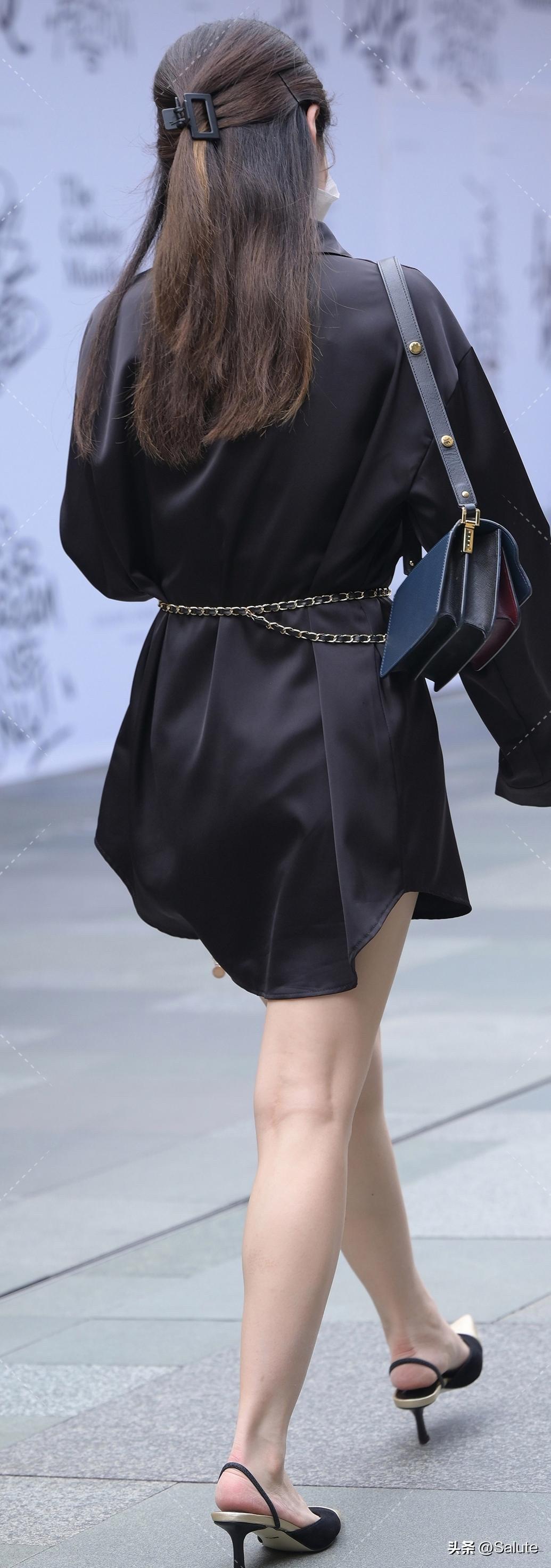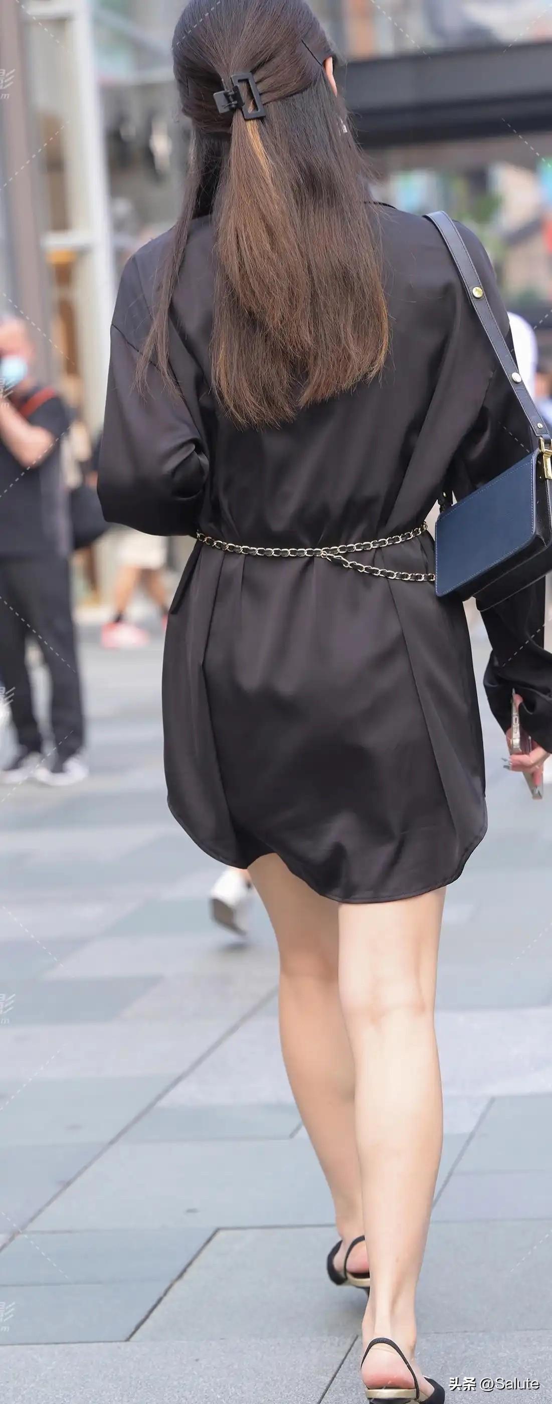都市时尚女孩,黑色连衣裙搭配链条腰带,时尚又优雅!
