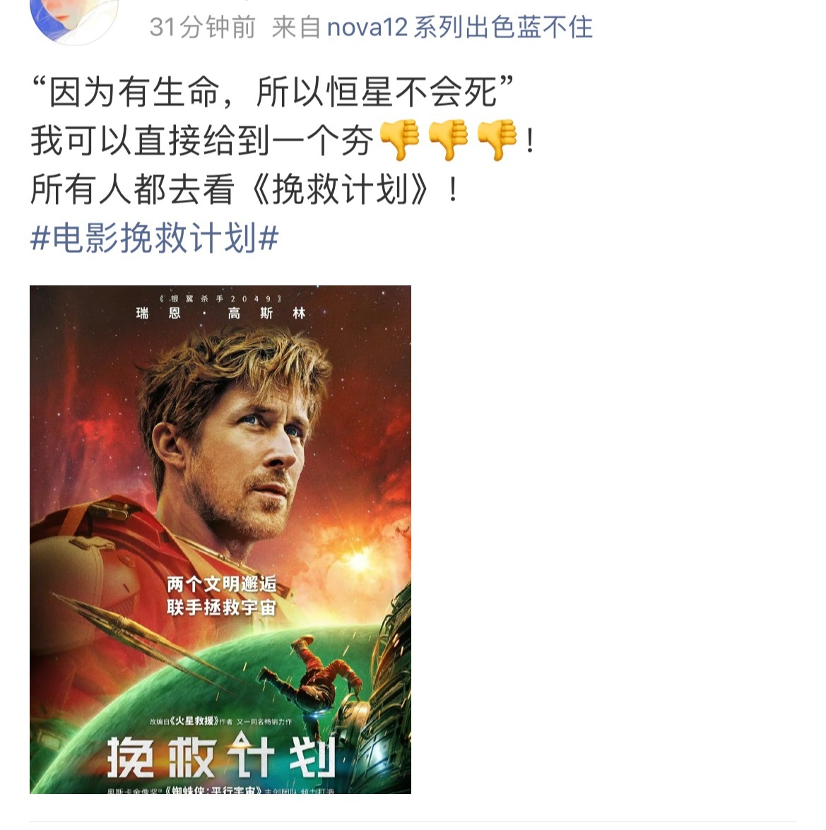 挽救计划这部电影口碑好得我有点怕但是一刷,如果这是水军的话这批水军也太高质了吧…… 看完这些,我已经忍不住去买票了
