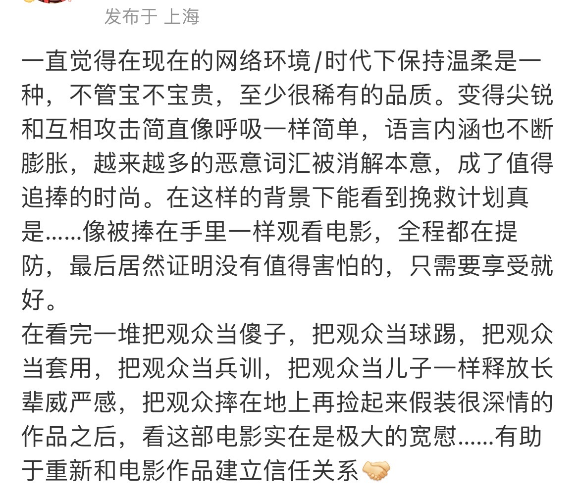 挽救计划这部电影口碑好得我有点怕但是一刷,如果这是水军的话这批水军也太高质了吧…