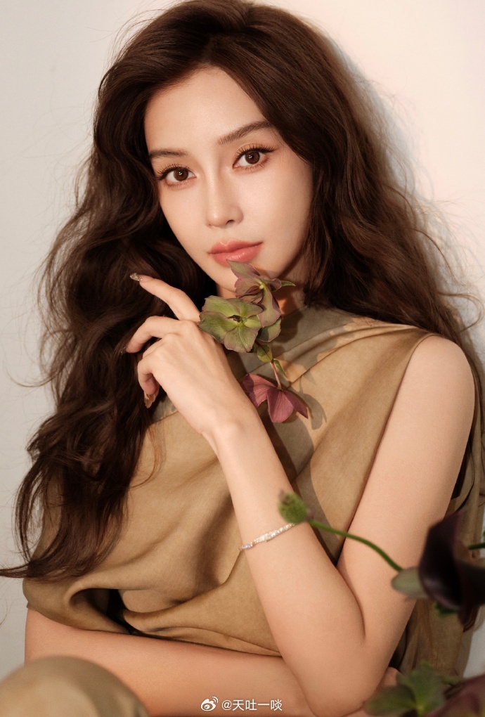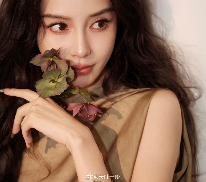 卡其色复古长裙、手持花束温婉灵动——杨颖。每日明星美图分享