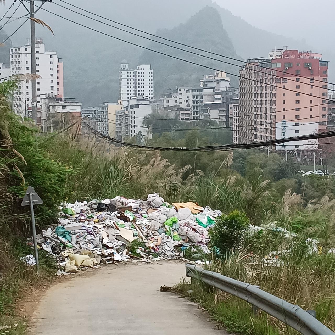 巴马的山好水好 大垃圾堆很不好 今天在巴马坡月村,足拉屯后身儿,登了一个无名小山。 一路上顺着盘阳河前行,欣赏着绿油油的防守和周边的山花树木,心情无比畅快。 步入山路只转了第一个弯,就看见了不和谐的一幕(见图片四),只见一个巨大的垃圾堆就赫然立在那里,不但眼见不爽,闻到的气味更加恶心。 我看到许多登山者对这座山还是很有热情的,人们背着包,拄着拐上山下山,也是络绎不绝的。 这座无名的小山,路却修得很好,可以行车,让我们看到当地管理部门的付出和用心。 然而,这座大垃圾山造成的不和谐,让人顿感不适。 希望当地管理部门会看到,会关注会处理,看到这份不和谐,早就这样结束了 @广西巴马甲篆镇坡月村城管部门以及一切关注巴马康养环境的爱心人士。[祈祷][祈祷][祈祷]