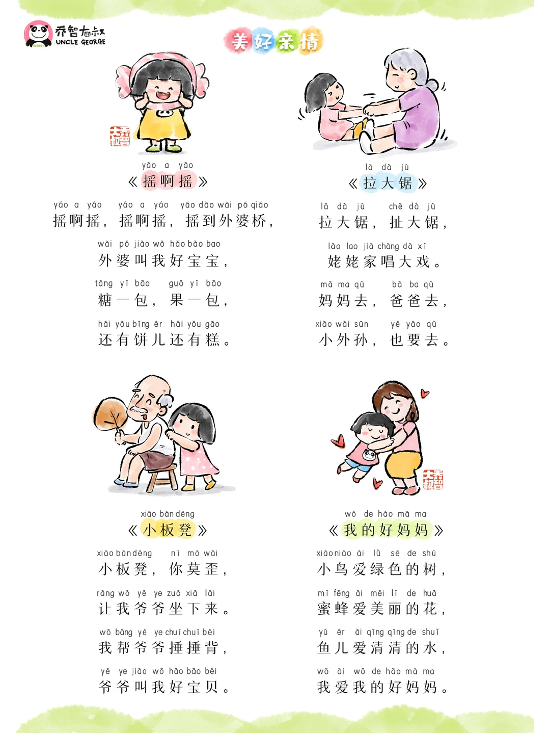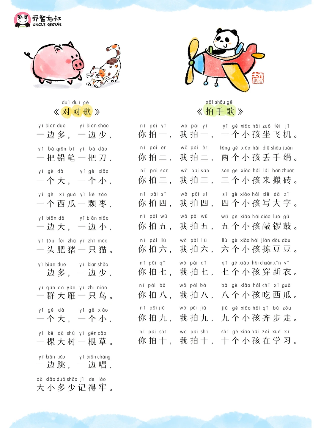 今天是“世界儿歌日” 大叔精心挑选了 90首好听的儿歌 送给可爱的孩子们 也请亲爱的爸爸妈妈记得 陪孩子一起歌唱 因为,唱歌的孩子 总是快乐的