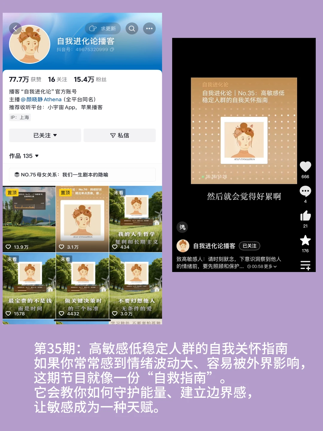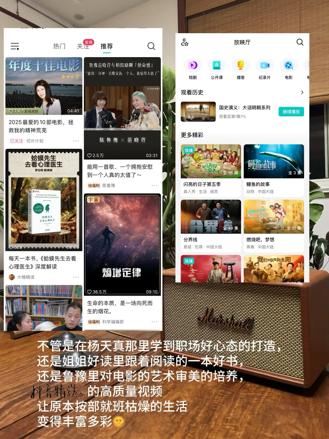 很多姐妹留言问我在哪听,我喜欢通勤路上或休息时,用精选“听视频”模式,退出或者锁屏时支持后台播放,边做其他事情,边跟着博主学干货,女性职场干货、心态成长、职场人际关系高质量的视频,真的学到很多知识。我自己很喜欢用精选的一个原因是没有广告或者杂七杂八的推销购物来打扰,非常适合沉浸式学习,而且他上面的内容都经过平台筛选,内容水位线就在那里了,我后面给大家推荐的几个,可以说从我的人生观消费观上都带来了不少启发和成长,好东西看多了人真的不会像以前那么焦虑了。