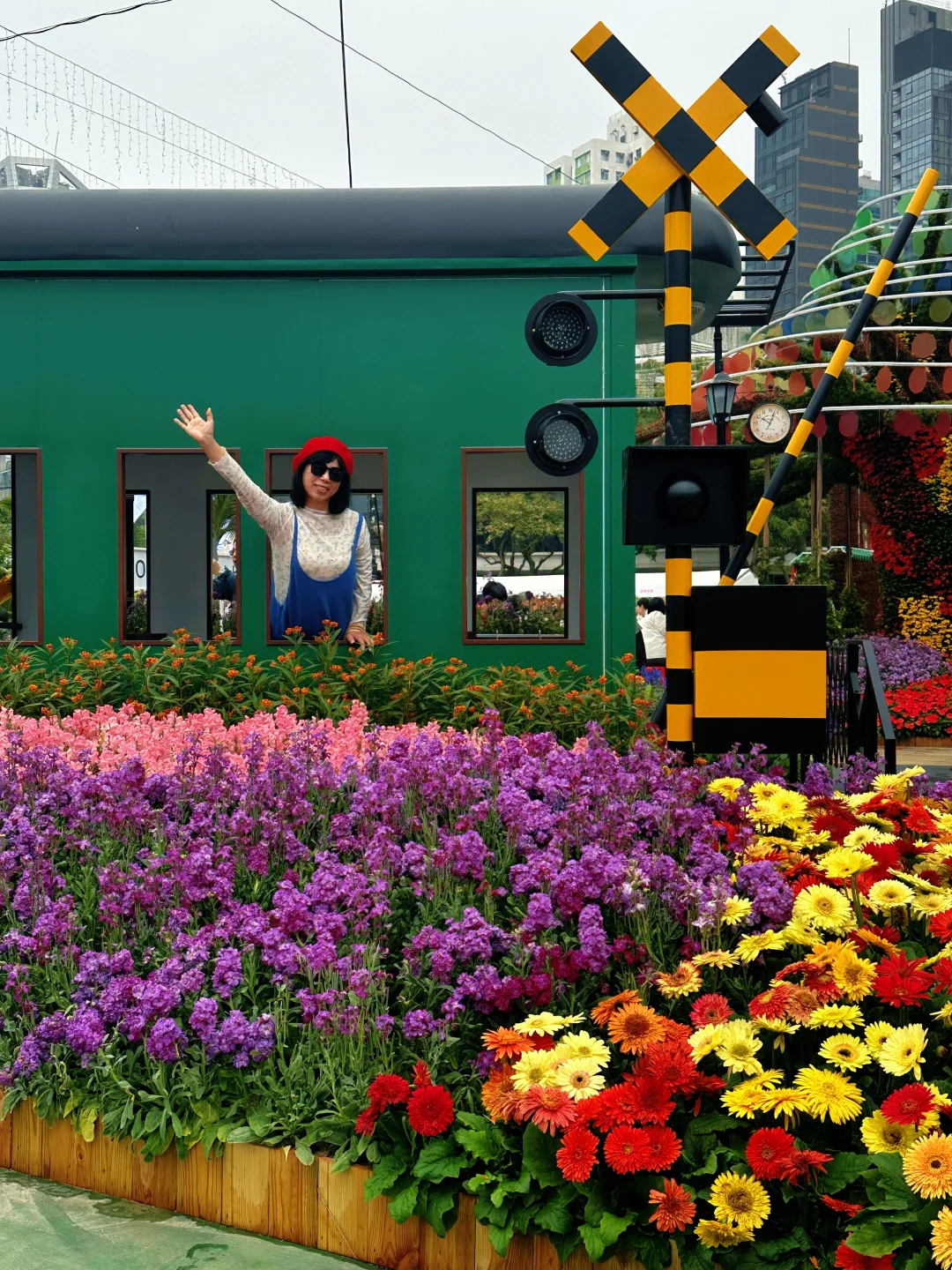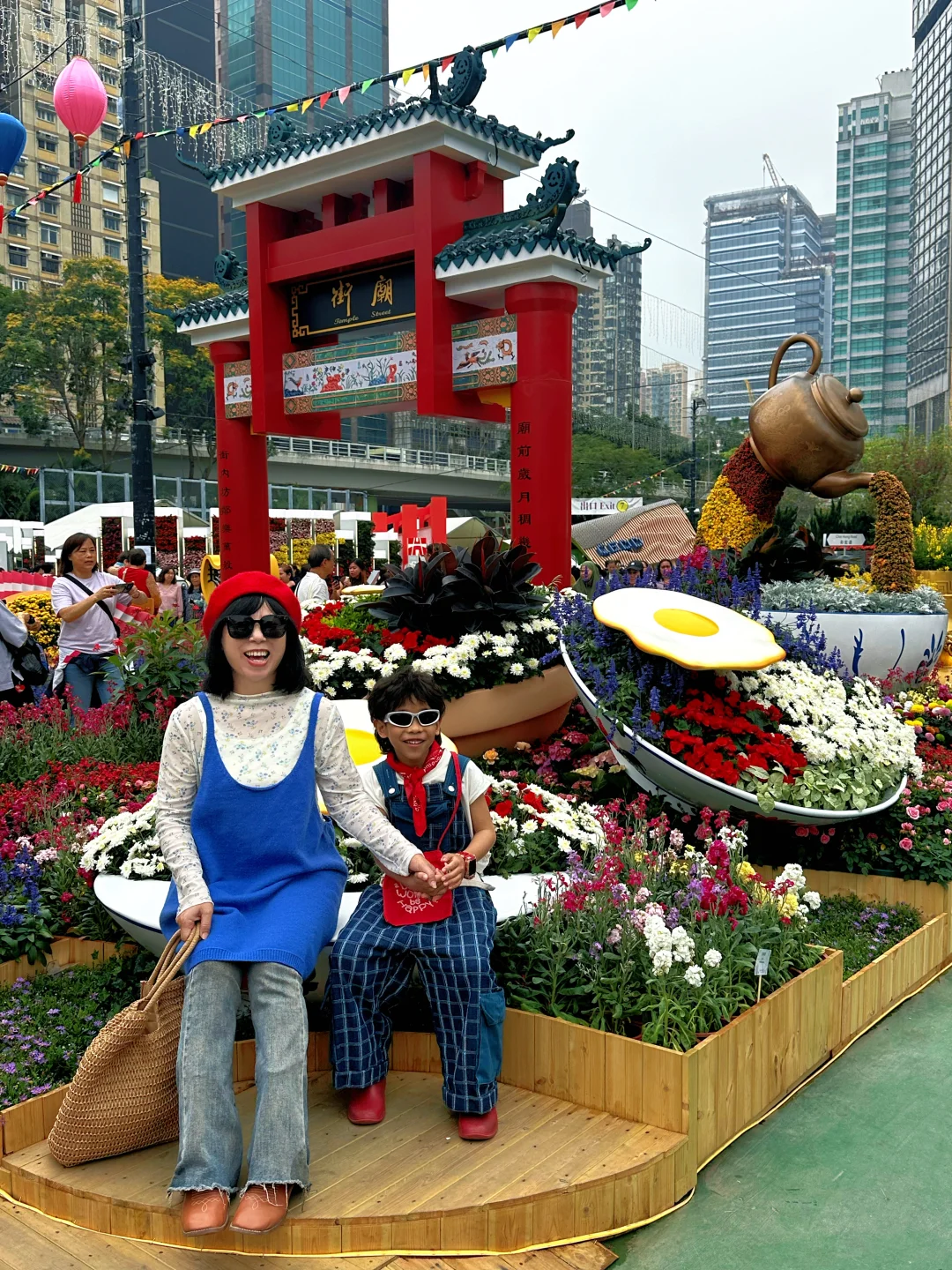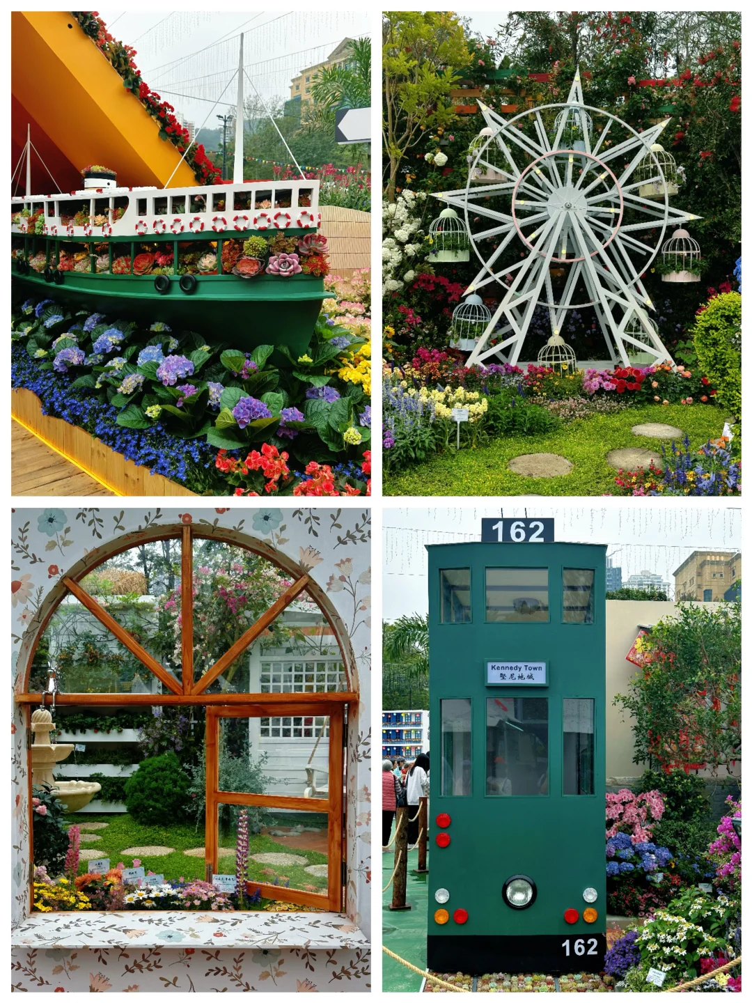 游乐设施都在中央草坪这里,从花展门口进来一直走到庙街展区就能看到草坪入口啦~