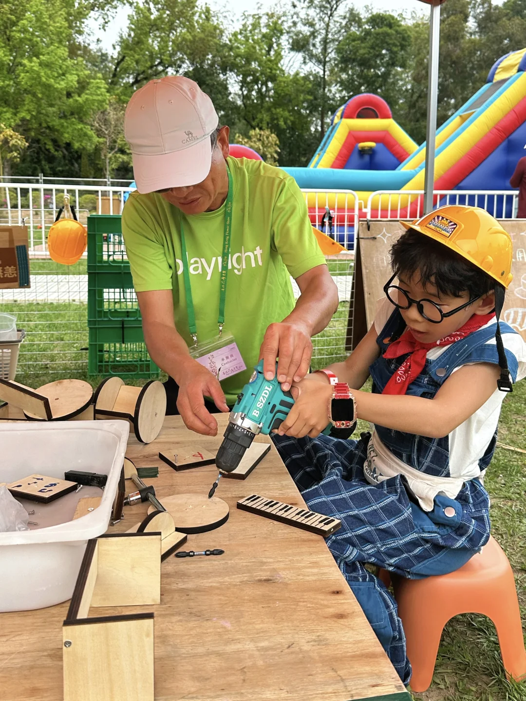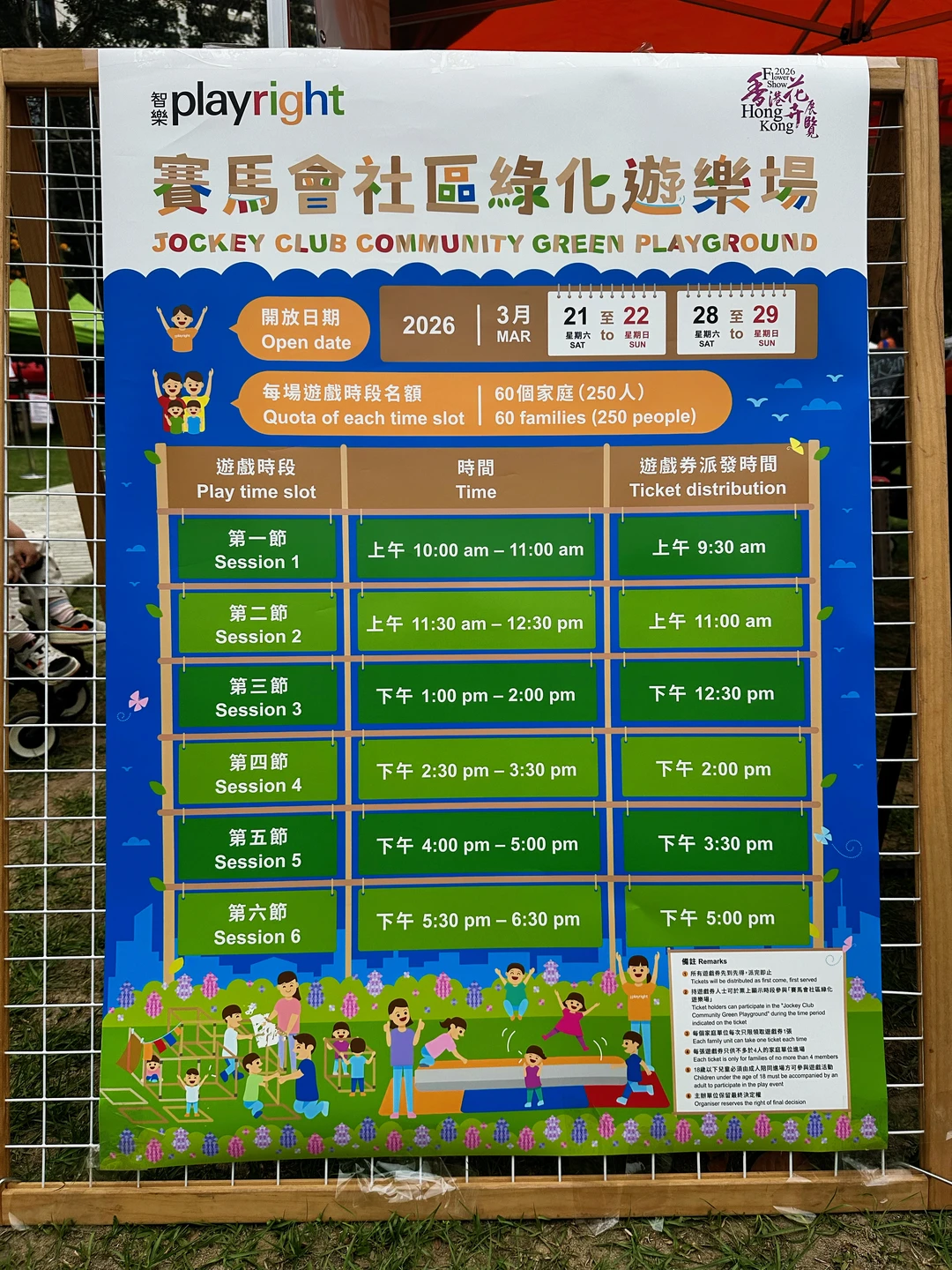 🔺赛马会社区绿化游乐场是分时间段开放的(时间表在图18),每次可以玩1h,先排队取票🎫,再入场游玩(免费);这里基本都是diy的木头设施,一定要看好孩子,注意安全哦⚠️