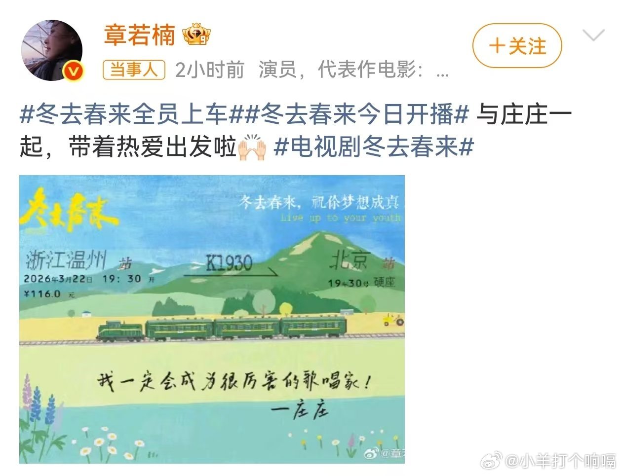 冬去春来今日开播锣鼓胡同那扇门终于推开啦!今晚七点半央八黄金档,白宇章若楠带你住进“冬去春来”小旅馆,看90年代北漂青年怎么把苦日子过出滚烫劲儿。