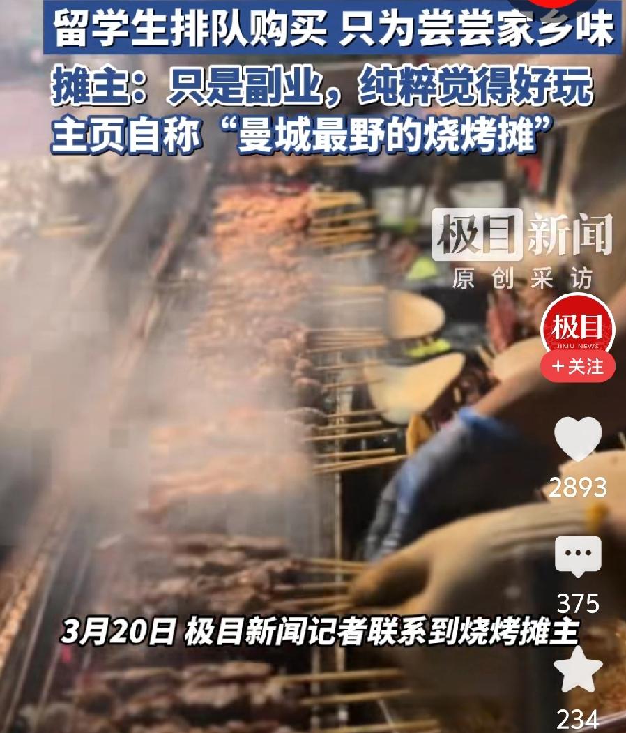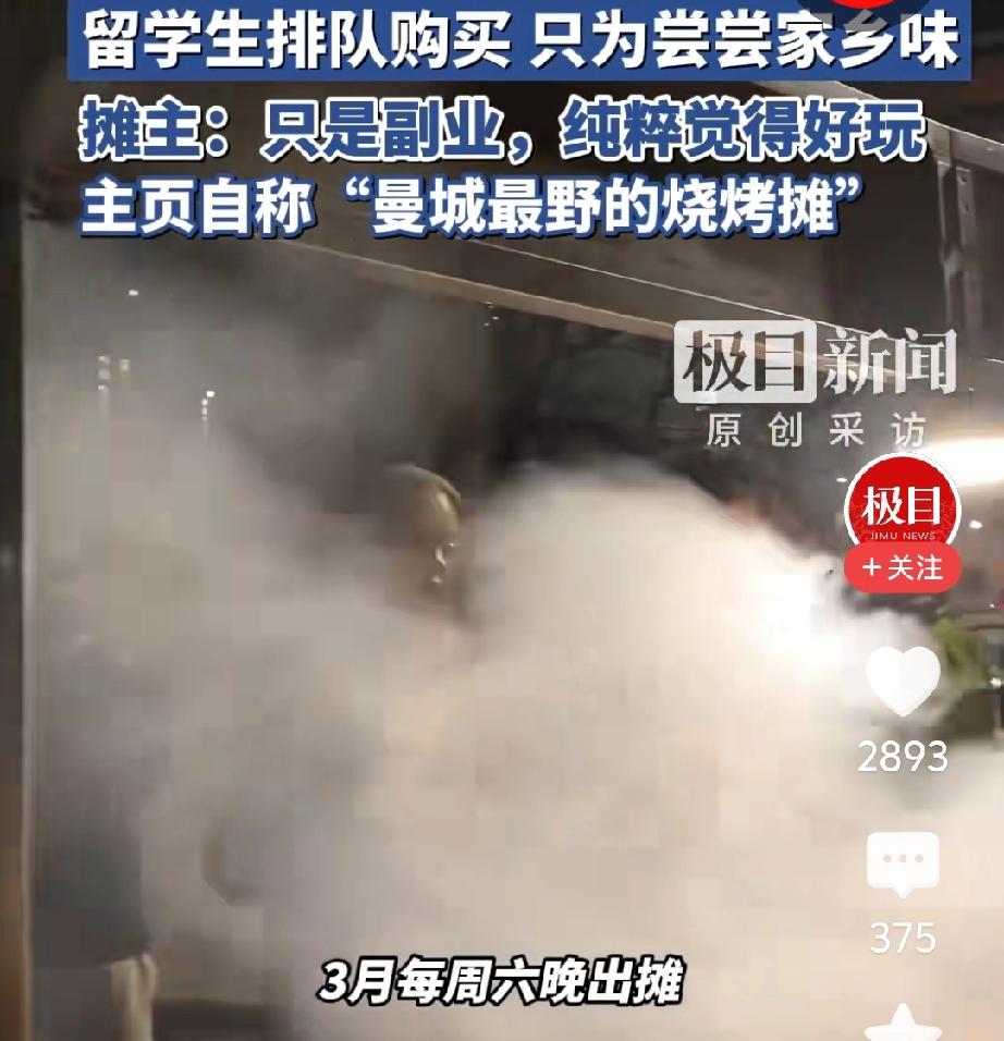 英国曼彻斯特桥洞下的中国烧烤摊火啦!曼联比赛结束后,大家都得排长队才能买到。这烧烤摊运营3年了,是团队副业,就图个“好玩”。它叫“炙友烧烤”,在国内社交平台也有账号。 2025年菜单显示,羊肉小串1.2英镑,烤茄子4.5英镑,虽比国内贵,但在曼彻斯特物价里还算合理。很多留学生排队不为价格,就为那口孜然味。英国“白人饭”只能饱腹,让留学生觉得空虚。在异国吃到家乡烧烤,那是“家的感觉”,难怪大家都爱这一口,连英国本地民众也来排队呢。