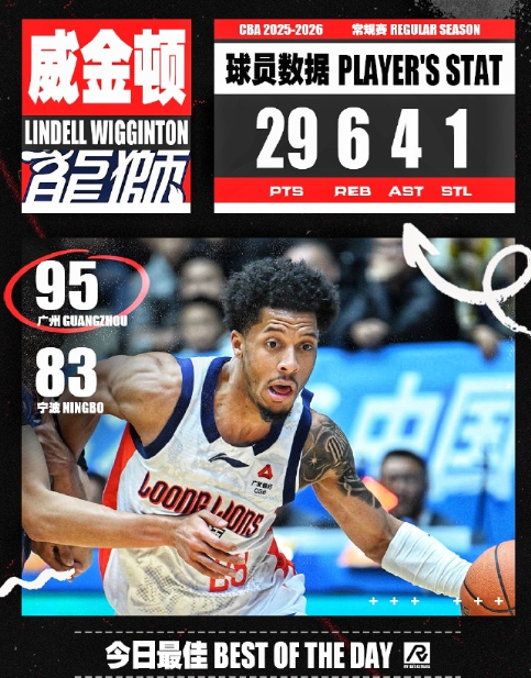 今日最佳本土无疑是赵睿了,全场三分4投4中拿下北京队职业生涯的最高34分!北京客场战胜辽宁!最佳外援给到广州龙狮的威金顿!29分帮助广州客场战胜宁波!两场比赛都是客队取胜!