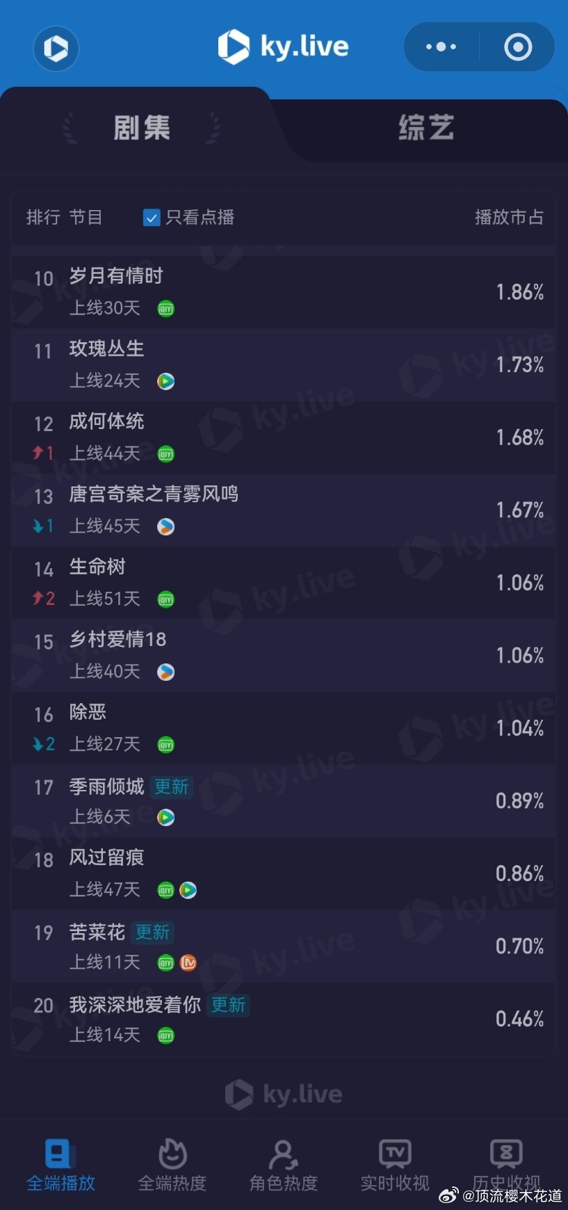 3月21日云合播放占比云合 酷云逐玉云合51.5%,酷云48.93%你好1983
