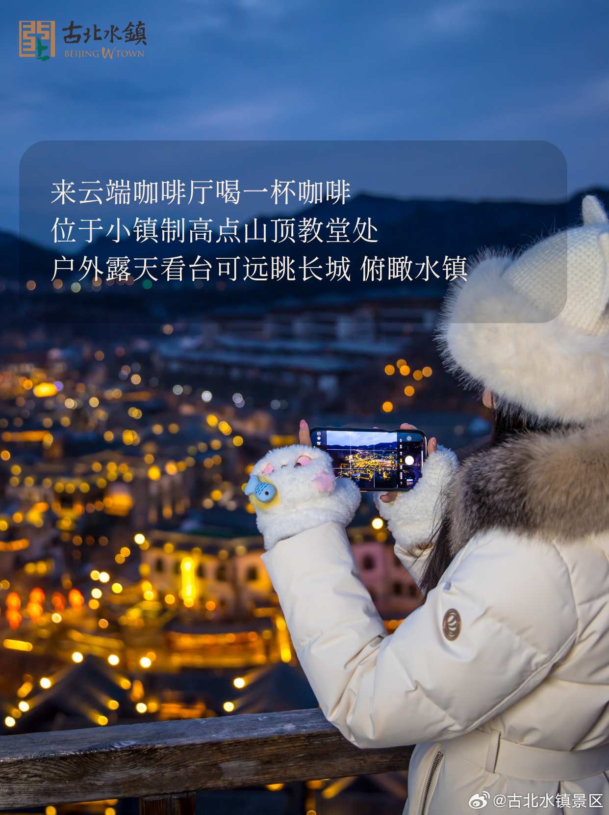 来云端咖啡厅喝一杯咖啡位于小镇制高点山顶教堂处户外露天看台可远眺长城 俯瞰水镇