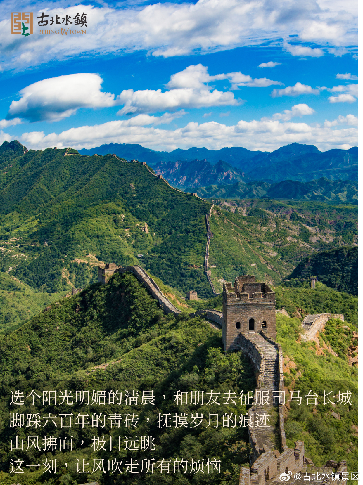 选个阳光明媚的清晨,和朋友去征服司马台长城脚踩六百年的青砖,抚摸岁月的痕迹山风拂面,极目远眺这一刻,让风吹走所有的烦恼
