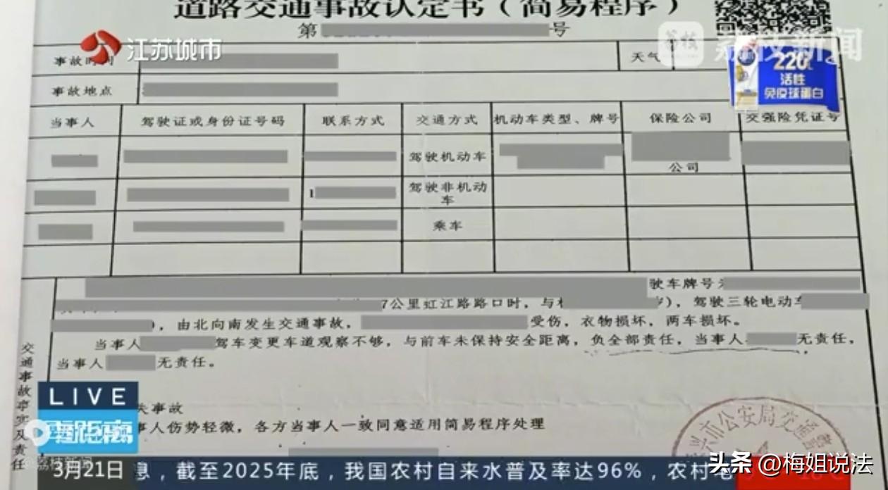 江苏泰兴,陈某驾车与三轮车发生碰撞,陈某全责,随后三轮车主与陈某及保险公司签了三方协议,一次性赔偿47000元。不料事后,三轮车主出现头晕恶心,经鉴定被评为九级伤残,影响日后生活和工作。于是,三轮车主再次找到陈某索要赔偿,陈某和保险公司一口咬定已经赔过了,拒绝二次赔偿。三轮车主将陈某和保险公司起诉了! 陈某最近一次驾车时,不小心与一辆电动三轮车发生碰撞,两人当场都受了伤,三轮车主受伤相对严重,陈某第一时间将他送往就医。 事故发生后,陈某按流程,报警报保险。民警认定陈某负事故全部责任,陈某无异议。打算走理赔流程。 保险公司对这场事故综合评估后,建议陈某与三轮车主私下解决,他们正常赔付,陈某采纳了建议。 出院后,三轮车主与陈某及保险公司三方约在一起,就赔偿问题进行讨探。 讨论时,三轮车主杨某觉得自己头脑还算清醒,身体也没什么问题,私了更方便,还能快速拿到赔偿,而且对方给的数额也还算满意,也就同意了私了解决,并当场签订了赔偿协议书,获得一次性赔付47000元。 杨某本以为这件事得到了圆满的解决,自己拿到了满意的赔偿。 没想到,过了几天,杨某发现自己经常性的头晕恶心,而且不仅不见轻,反而越来越严重,就去做了检查,结果出来吓一跳,原来他脑部受损。 杨某心想脑袋受伤肯定和那场事故脱不了关系,但这样下来,自己的赔偿就少要了,之前没把脑伤算进去啊! 于是杨某决定找机构鉴定一下伤情,为后续追加赔偿增加证据。 经过鉴定,杨某的脑伤是因交通事故导致的,而且脑伤引发精神障碍,活动能力中度受限,会影响日后生活和工作,被评定为九级伤残。 于是他拿着鉴定结果,找到驾驶员陈某和保险公司,要求二次赔偿,遭到了对方的拒绝。 被拒绝后,杨某将他们起诉了,要求他们追加赔偿。 陈某和保险公司坚决认定,他们三方已经达成了三方协议,而且已经赔付完全部损失,当时三轮车主也是认可的,并且也签了字,这事就算解决完了。 因为他们三方当初在调解的时候就约定好了,这是一个兜底条款,只一次性处理完毕,以后不会再因此产生经济纠纷。 驾驶员陈某和保险公司觉得,三轮车主杨某应遵守他们当时的三方约定,不能再要赔偿。 经审理查明,三轮车主在签订赔偿协议书时,不知道自己已构成伤残,也不知道协议金额与实际损失差距会很大,存在重大误解。原来的协议有失公平。 当时赔偿的项目只涉及到医疗费、护理费等必要的赔偿。现在鉴定是九级残疾,涉及到残疾赔偿金和精神抚慰金。他们的这个调解协议当中不包含这些。 经审理认为,三轮车主杨某有权请求撤销原协议的规定,但不再支持他重复赔偿请求,可以支持他追偿残疾赔偿金和精神损害抚慰金。 最终,判决再赔偿杨某15万余元。 根据《最高法关于适用〈民事诉讼法〉的解释》第248条:发生新的事实,当事人再次提起诉讼的,人民法院应当依法理。 这里三轮车主在取得赔偿后,又鉴定的伤残,属于"新的事实",他的残疾状态的是明确的,可依法起诉,依法获赔。 根据《民法典》第1179条规定:造成残疾的,还应当赔偿辅助器具费和残疾赔偿金。 本案第一次赔偿时,三方协议未涵盖残疾赔偿,也没赔付残疾赔偿金。现已经鉴定确认残疾,之前的赔偿属于有项目遗漏,可另行主张。 开车避免不了刮刮蹭蹭,有的人遇到交通事故,觉得不严重就可以私了,既省时又省力。但私了往往隐藏一些隐患,一旦触发隐患,反而更麻烦。 遇到问题时,切勿因为一时方便就匆忙决定,一定要分析利弊,酌情定夺。 大家对这起案件判决有何想法,评论区聊一聊。 信息来源:荔枝新闻