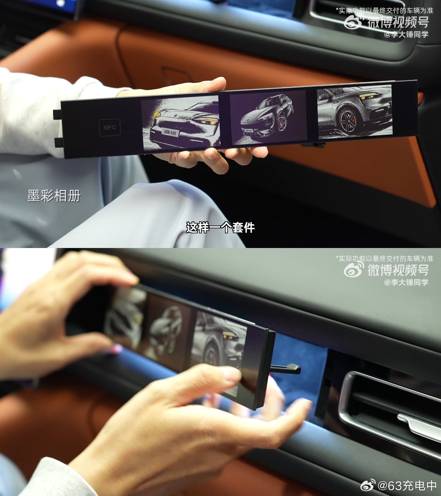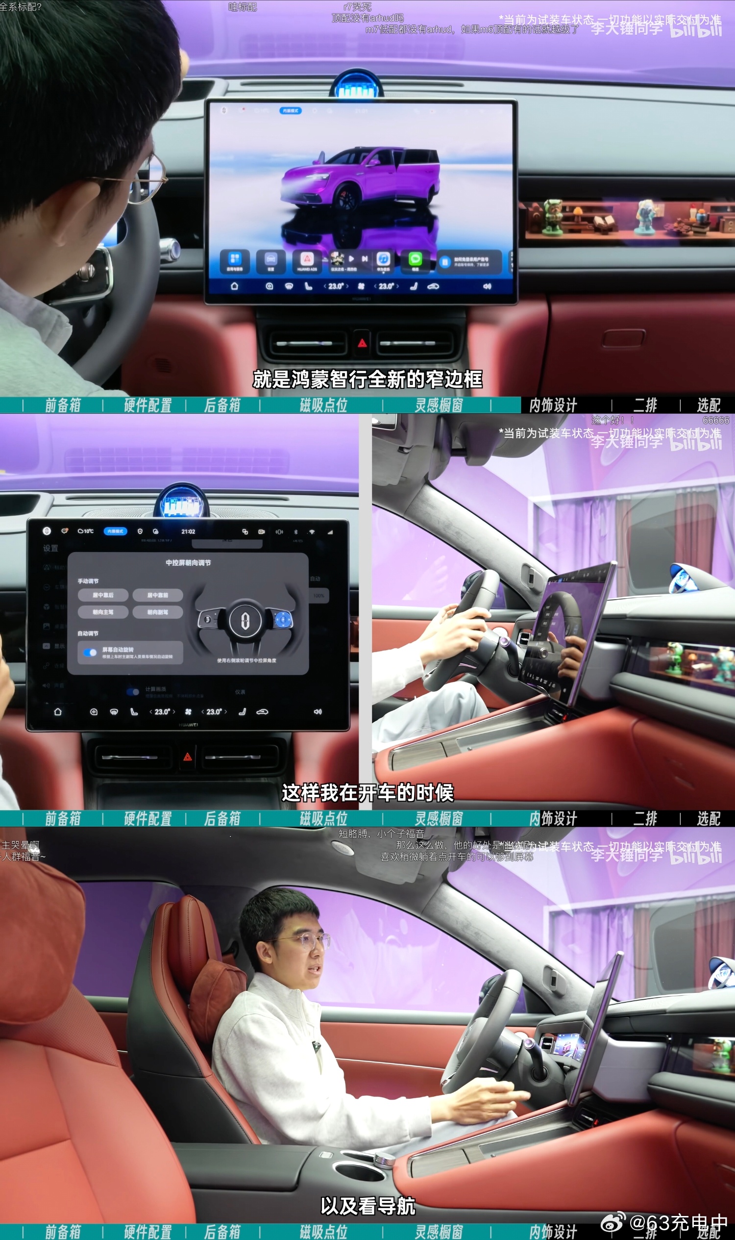 - M6 的中控屏是华子新的窄边框屏幕,不仅支持左右旋转,还支持前后伸缩。(图一)