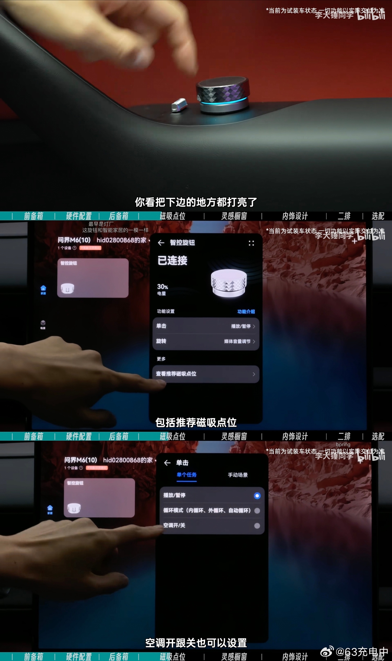 M6 上华子在按键的基础上做了进一步的开发,增加了选装调节,而且通过和车机互联做到了非常强的拓展能力。
