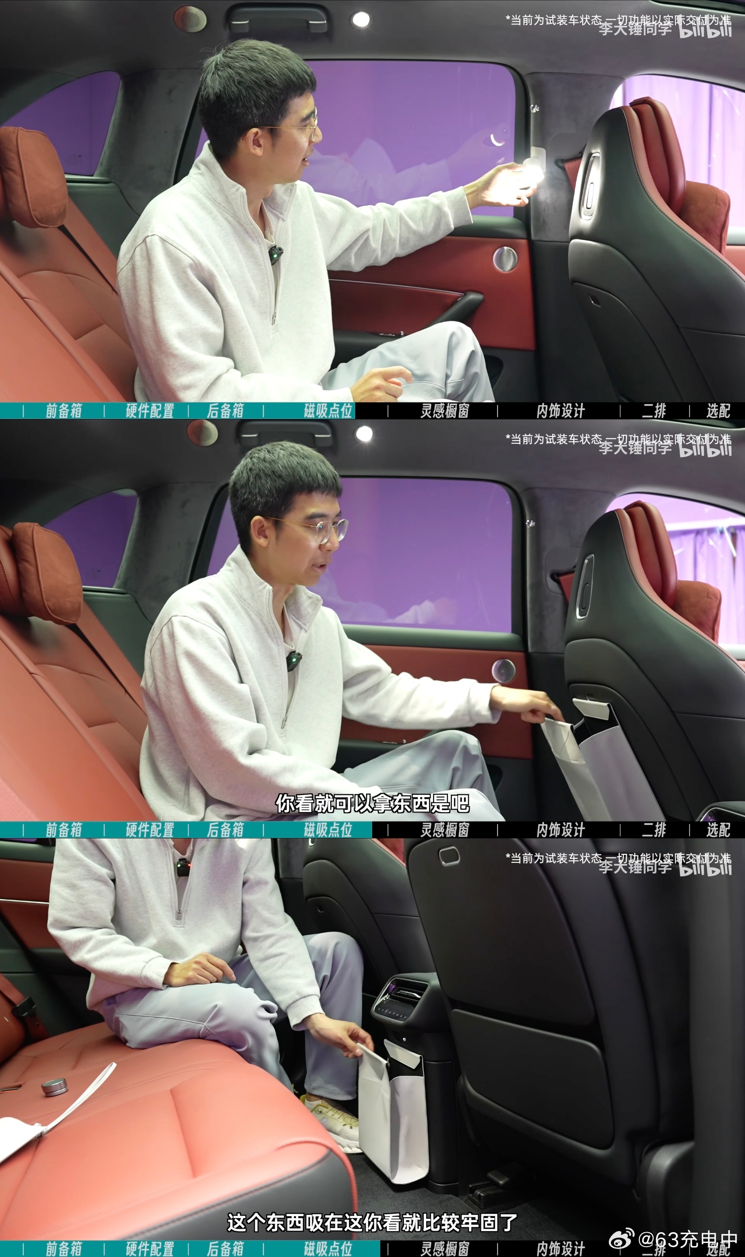 比如座椅靠背后面或者是后排空调控制面板下面,磁吸个纸巾盒或者磁吸个垃圾袋,带娃场景,或者长途自驾游感觉非常好用。