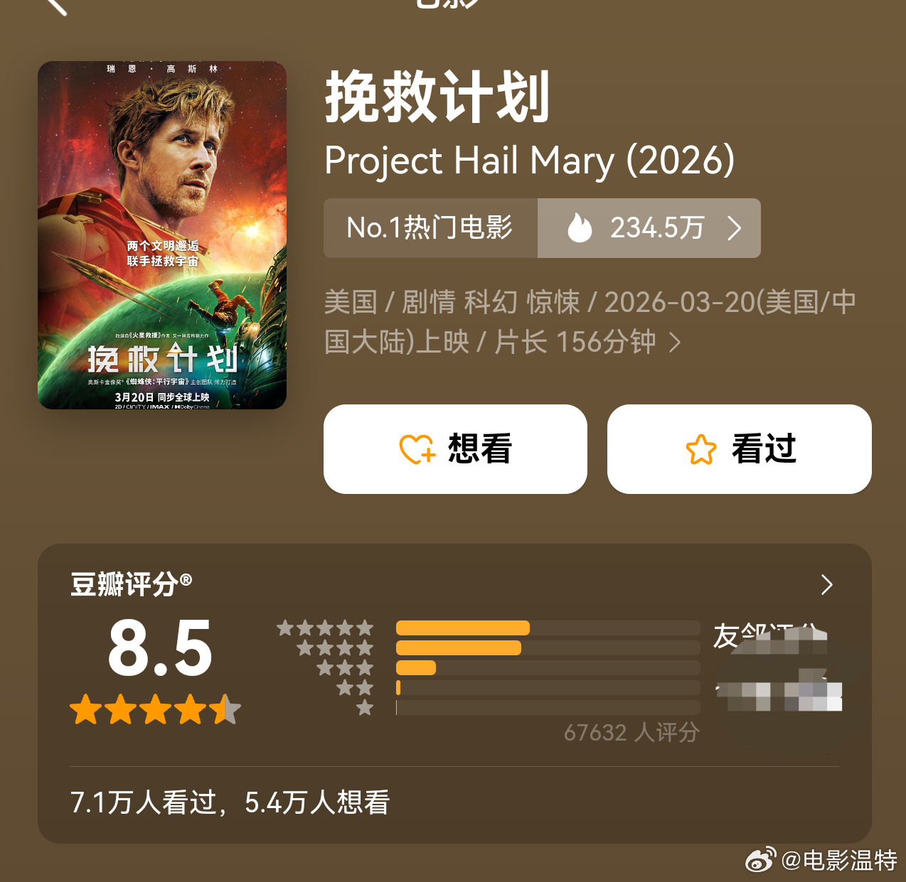 听听温特怎么说 《河狸变身计划》豆瓣开分7.7分,《挽救计划》豆瓣开分8.5分。高了还是底了? 目前两部电影票房预计都在1亿左右, 《挽救计划》特效厅不错影迷会特别喜欢,《河狸变身计划》偏低龄些。